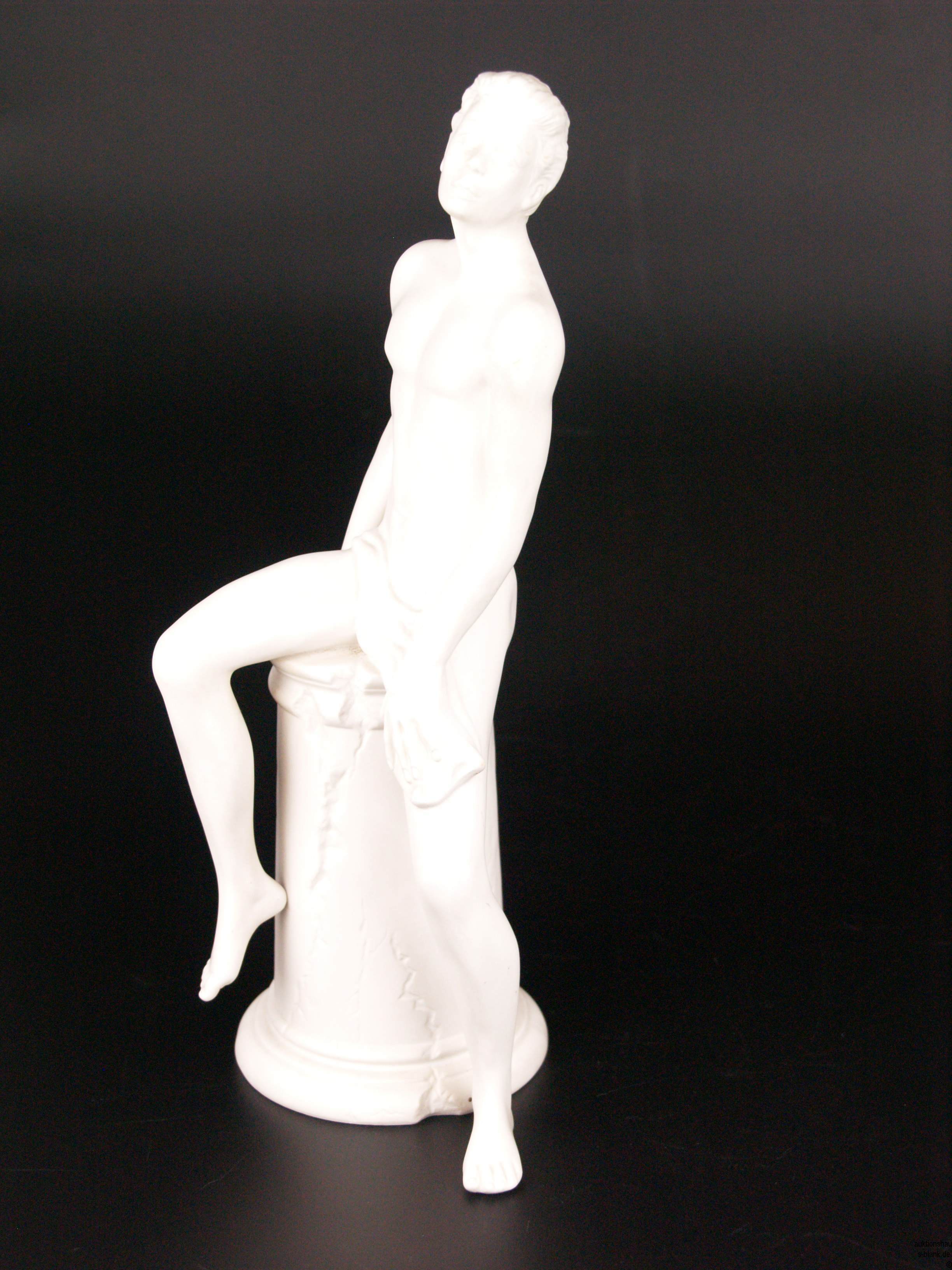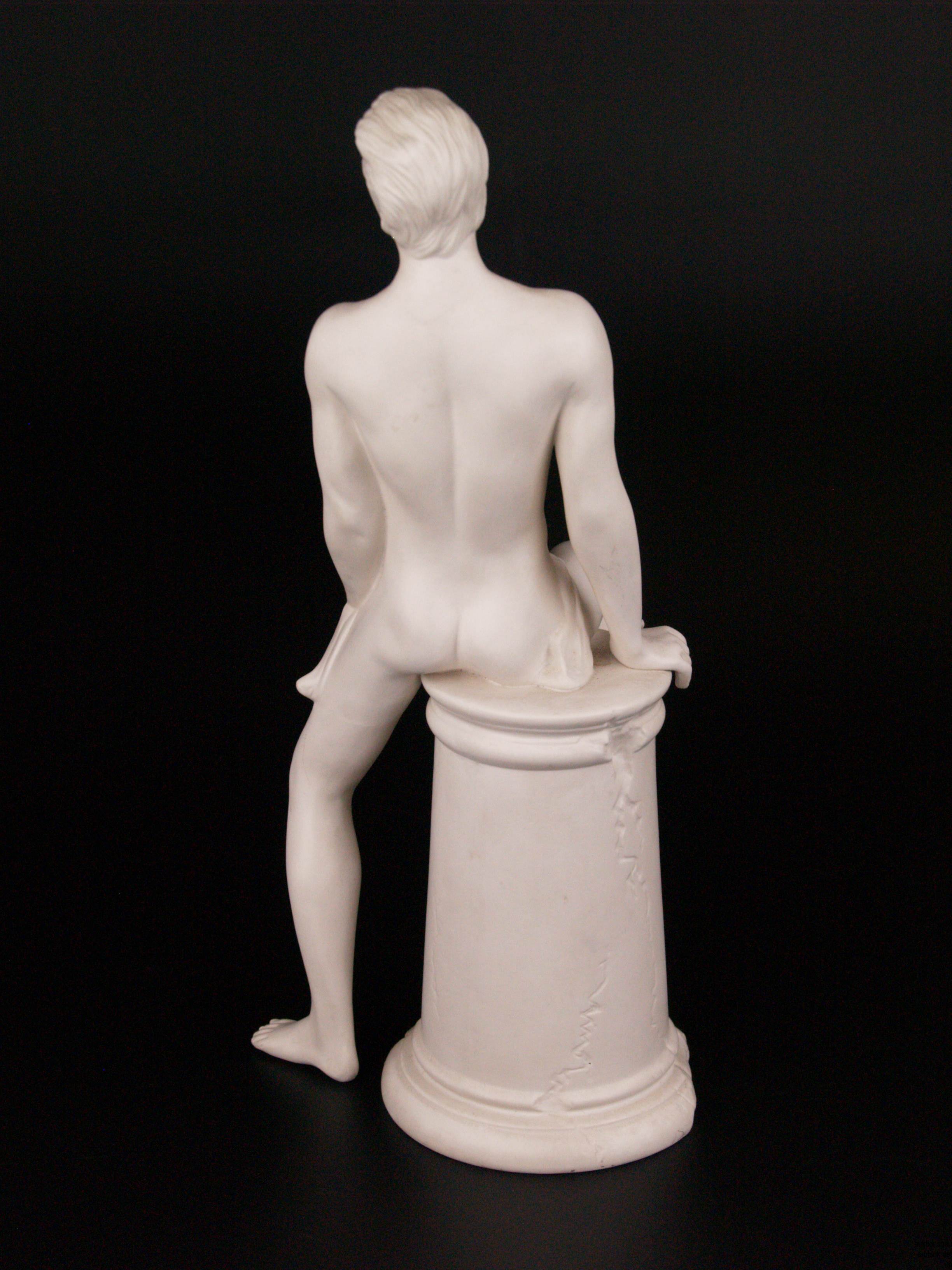 1000506. MANLIG NØGENMODEL PÅ EN STUB AF SØLER.