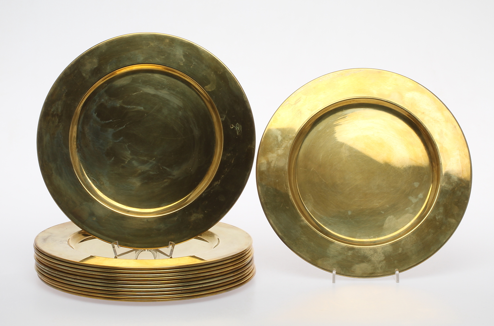 100436. PLADER, 12 stk., messing, 1900-tallet.