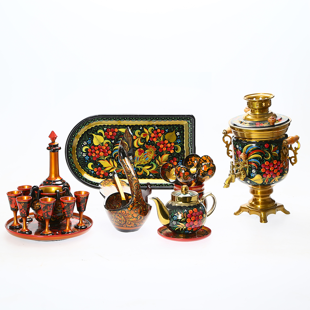1005677. SERVIS, 28 stk., lakeret træ, Rusland.