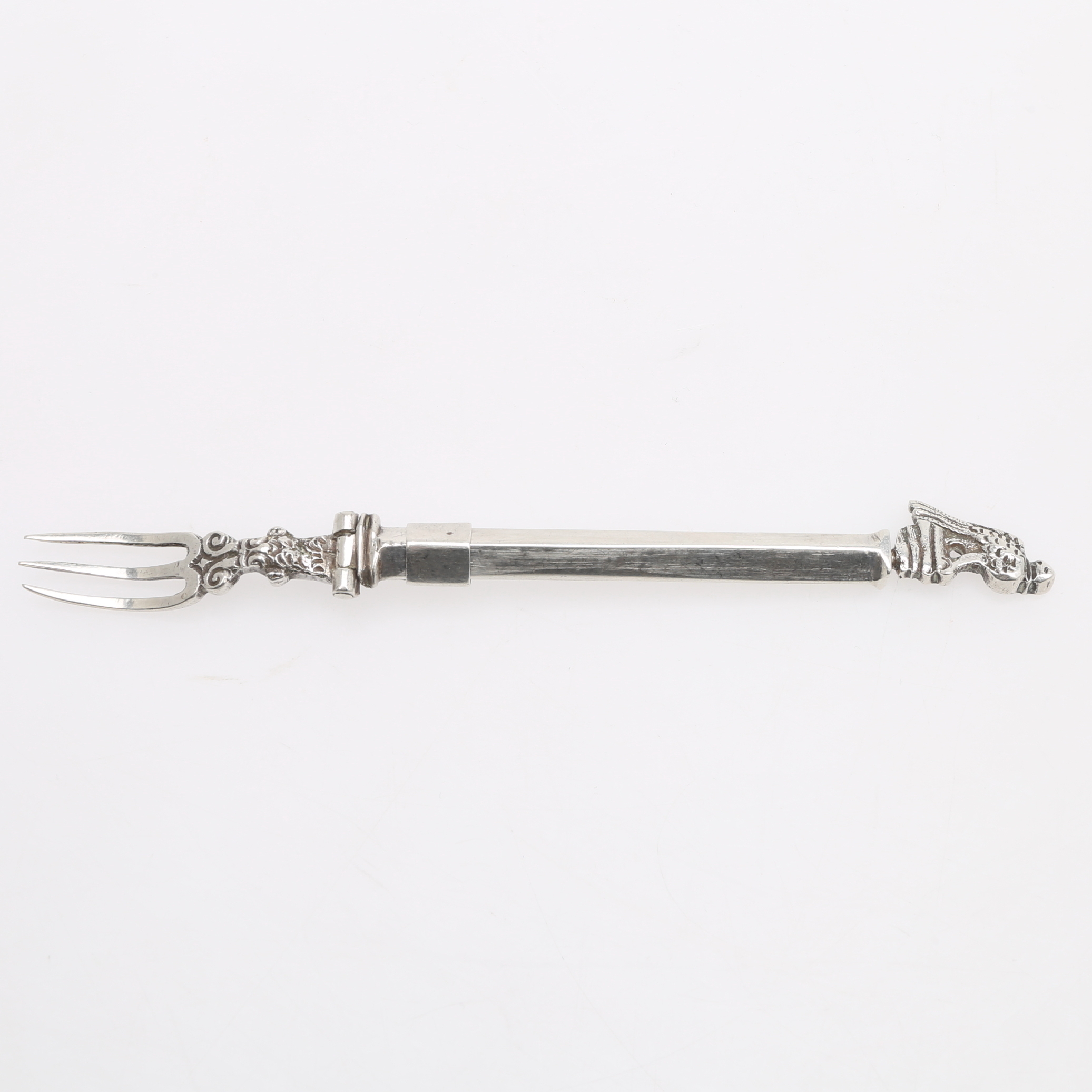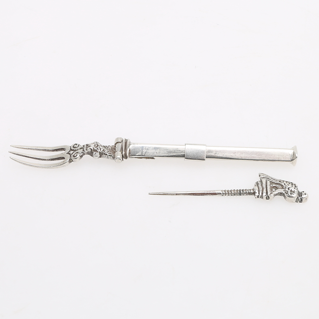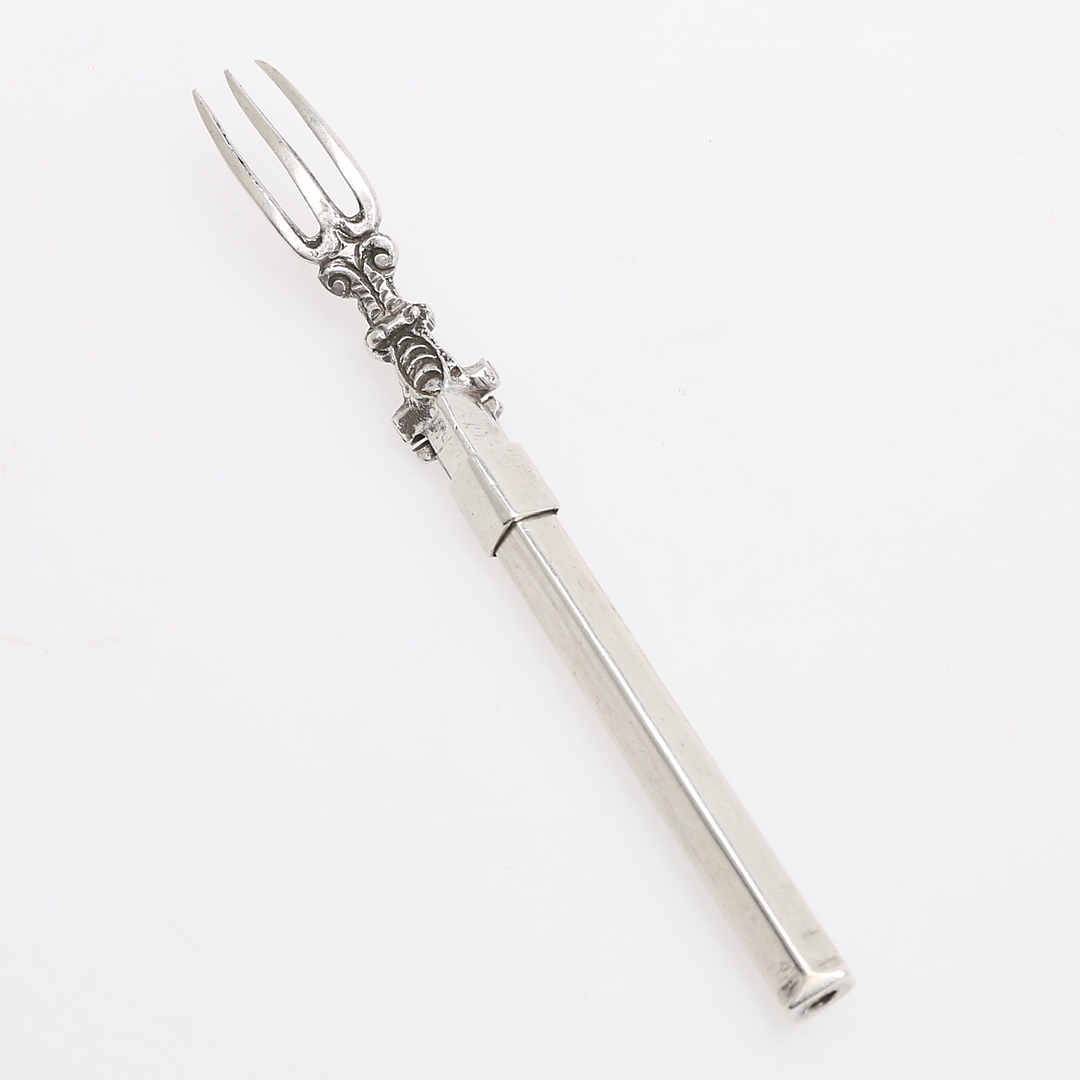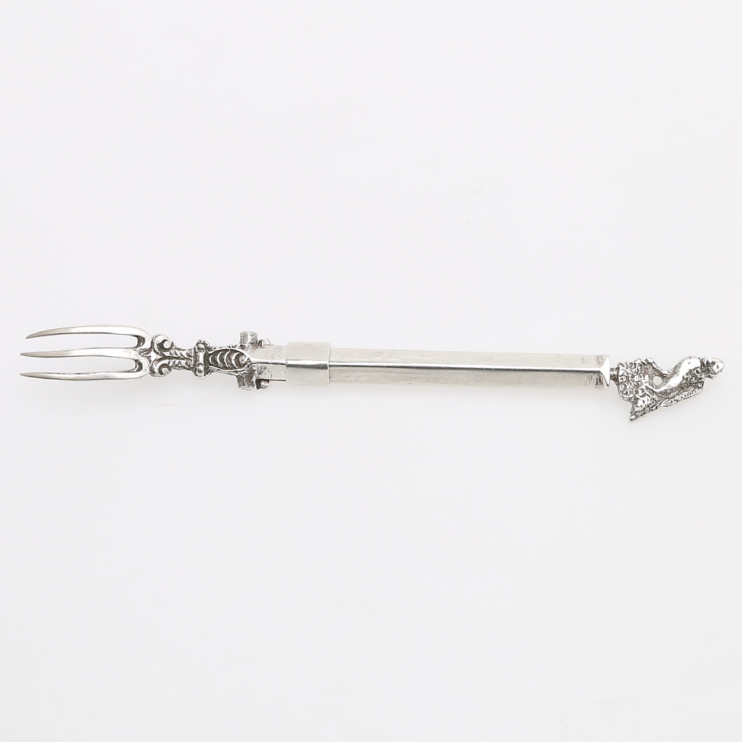 1013210. FLADEGAFLE MED TANDSTIKKER, sølv.