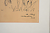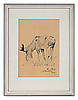 Manfred Schatz (10. december 1925 i Bad Stapenitz – 24. oktober 2004 i Meerbusch ved Nedre Rhinen), tysk maler. Han udmærkede sig især gennem skildringer af vilde dyr og jagtscener. Især i hans tidlige kreative periode i 1950'erne gennem landskabsmaleriet. Signeret og dateret: M.Schatz, jul 1963. Mål tegning ca. 11 x 16 cm, ramme ca. 25,5 x 19,5 cm.