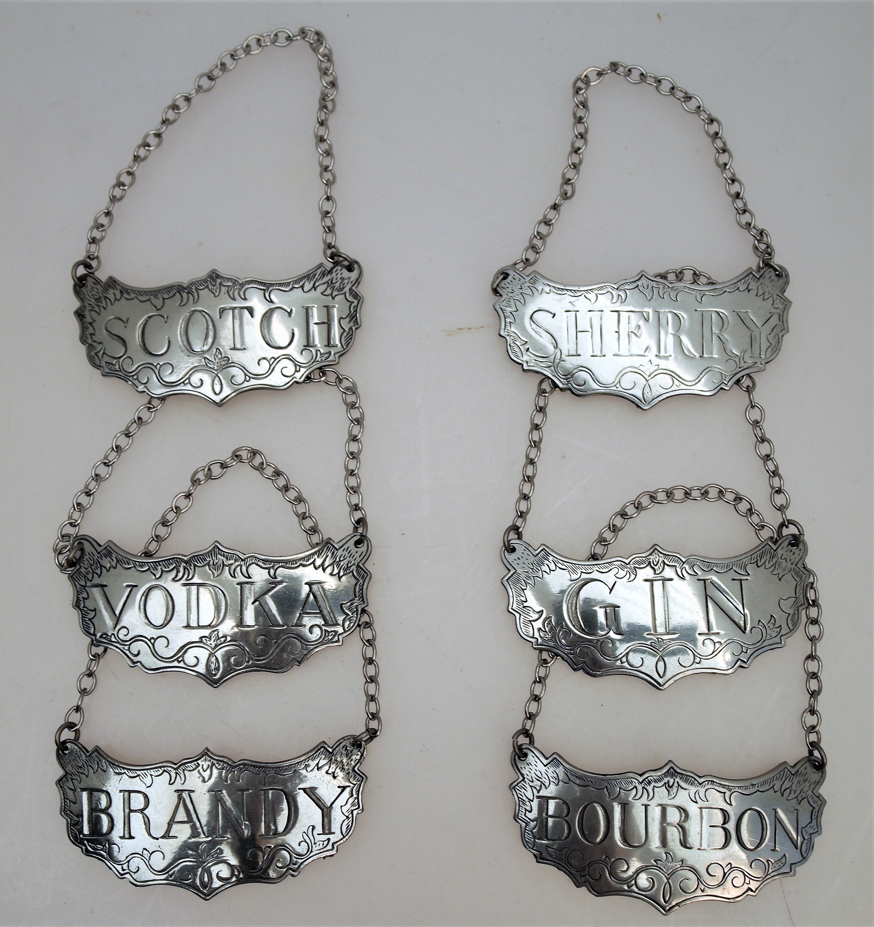 1014250. FLASKEHANGER, "Kirk Steiff", 6 stk, inklusive Scotch.