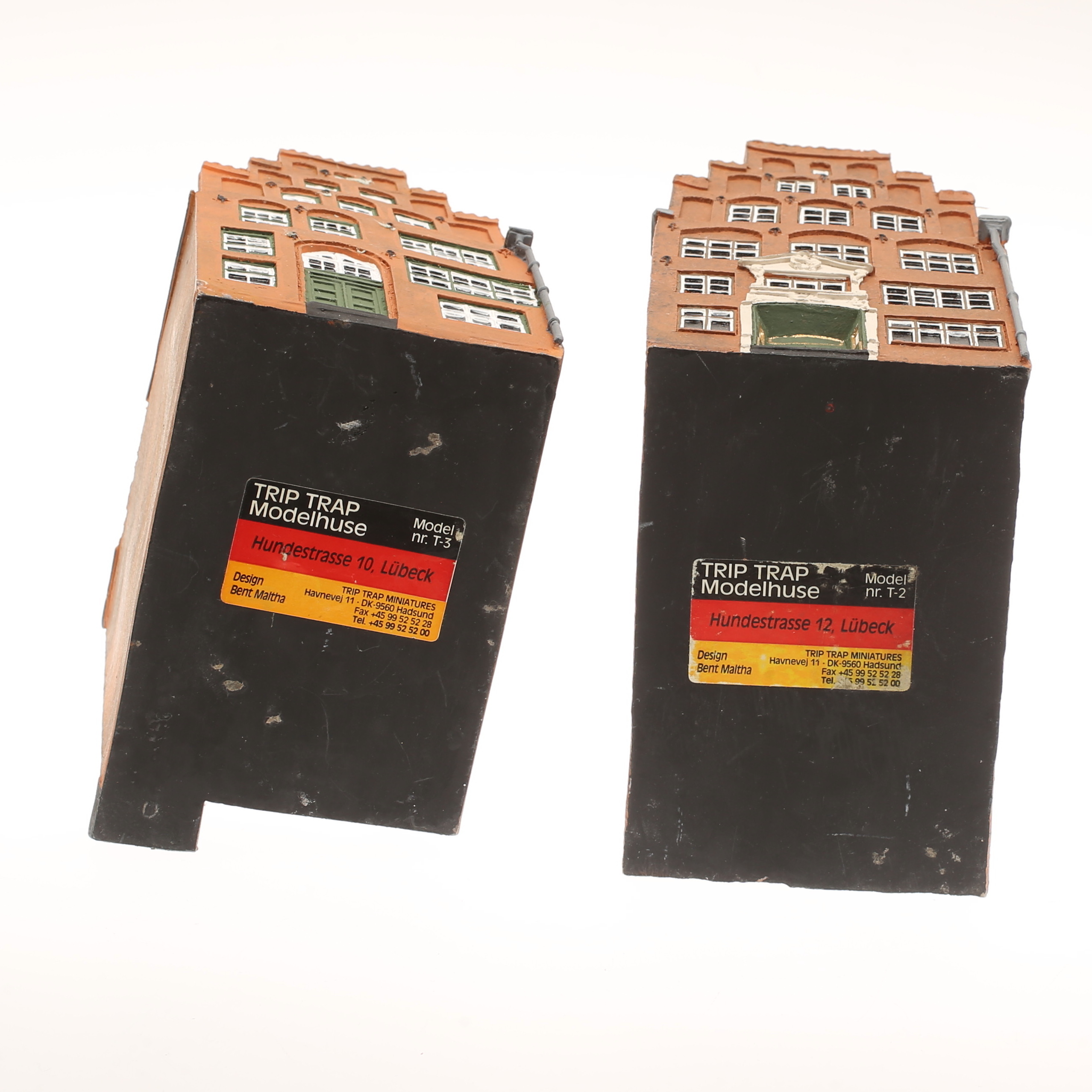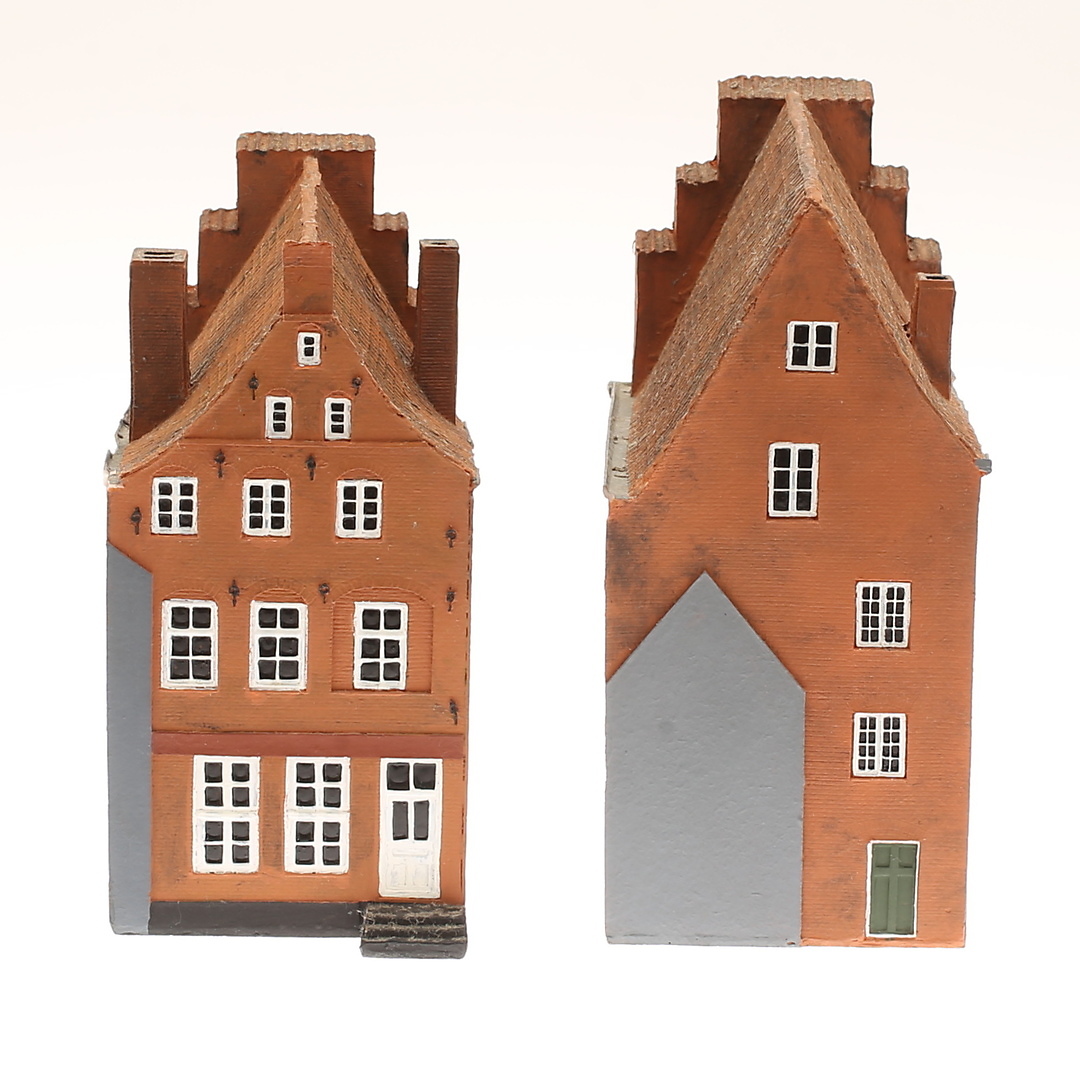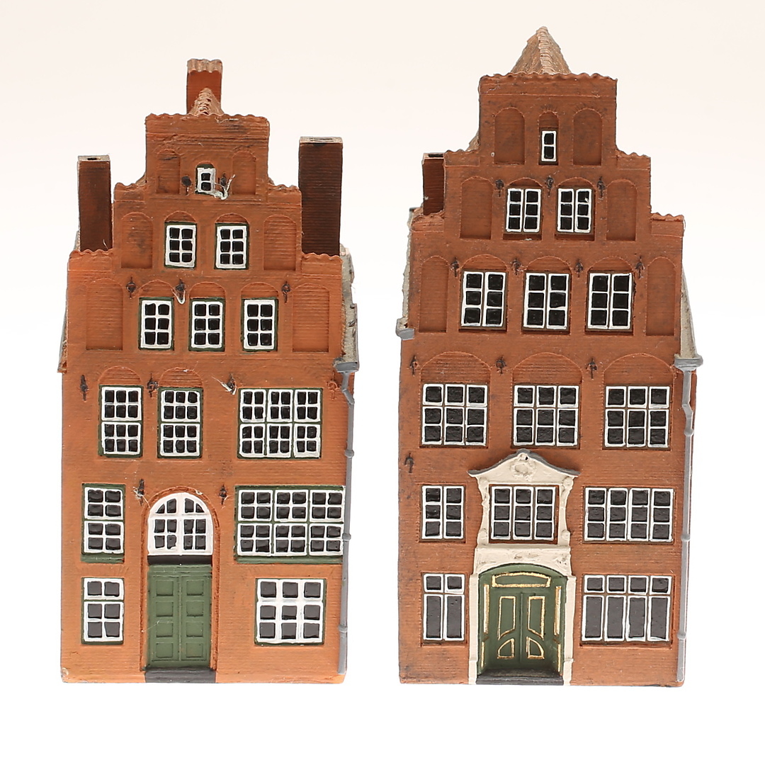 1016485. MODELHUS, 2 stk., keramik, "Trip trap modelhuse", design Bent Maltha.