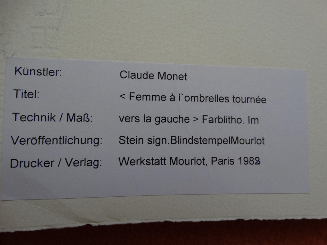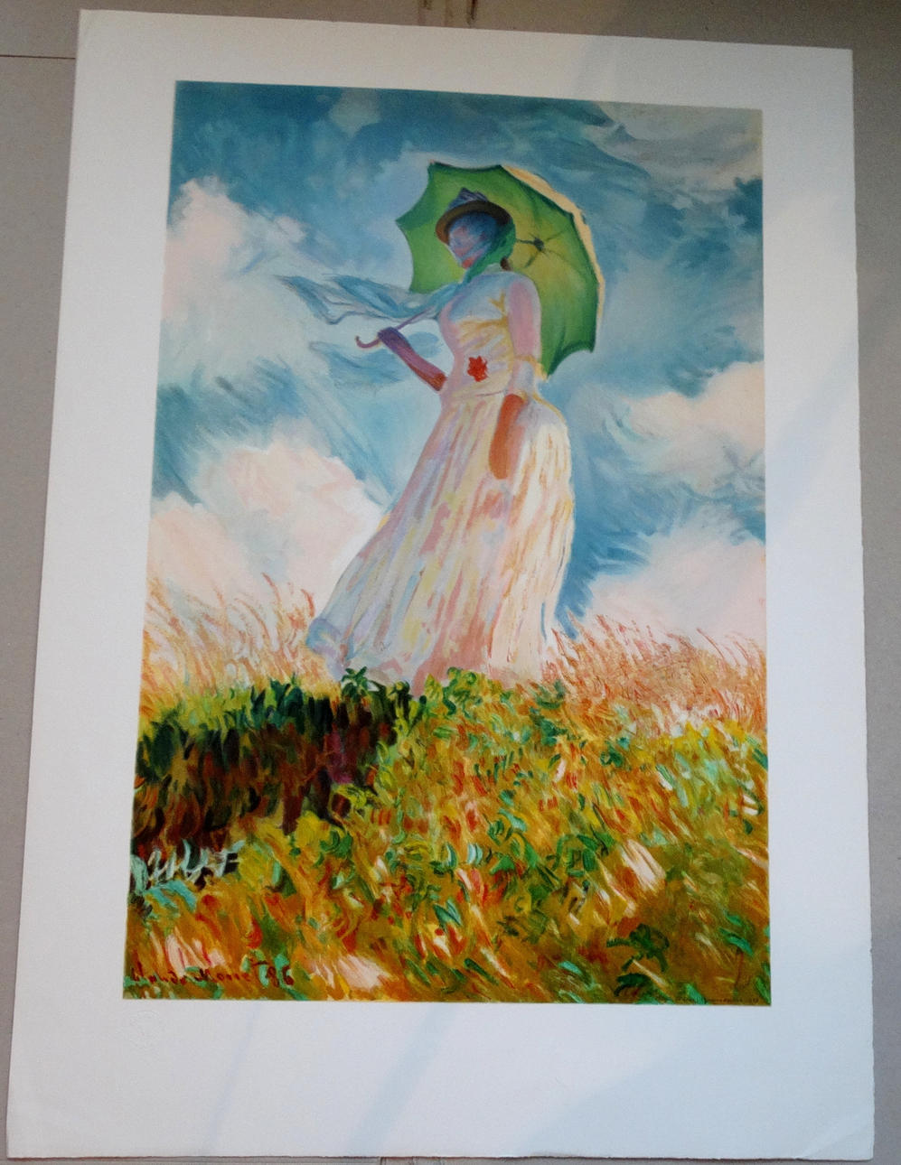 Claude Monet: Femme al'ombrelles tournee, litografi i farver, signeret i stenen, værksted Mourlot, ca. 53 x 75 cm, Paris, 1988.