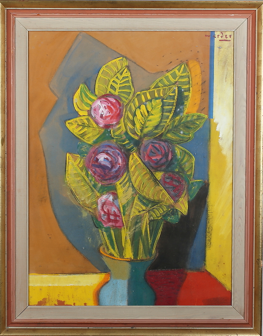102055. GUSTAV WERDER. Stilleben. Pastel. Underskrevet.