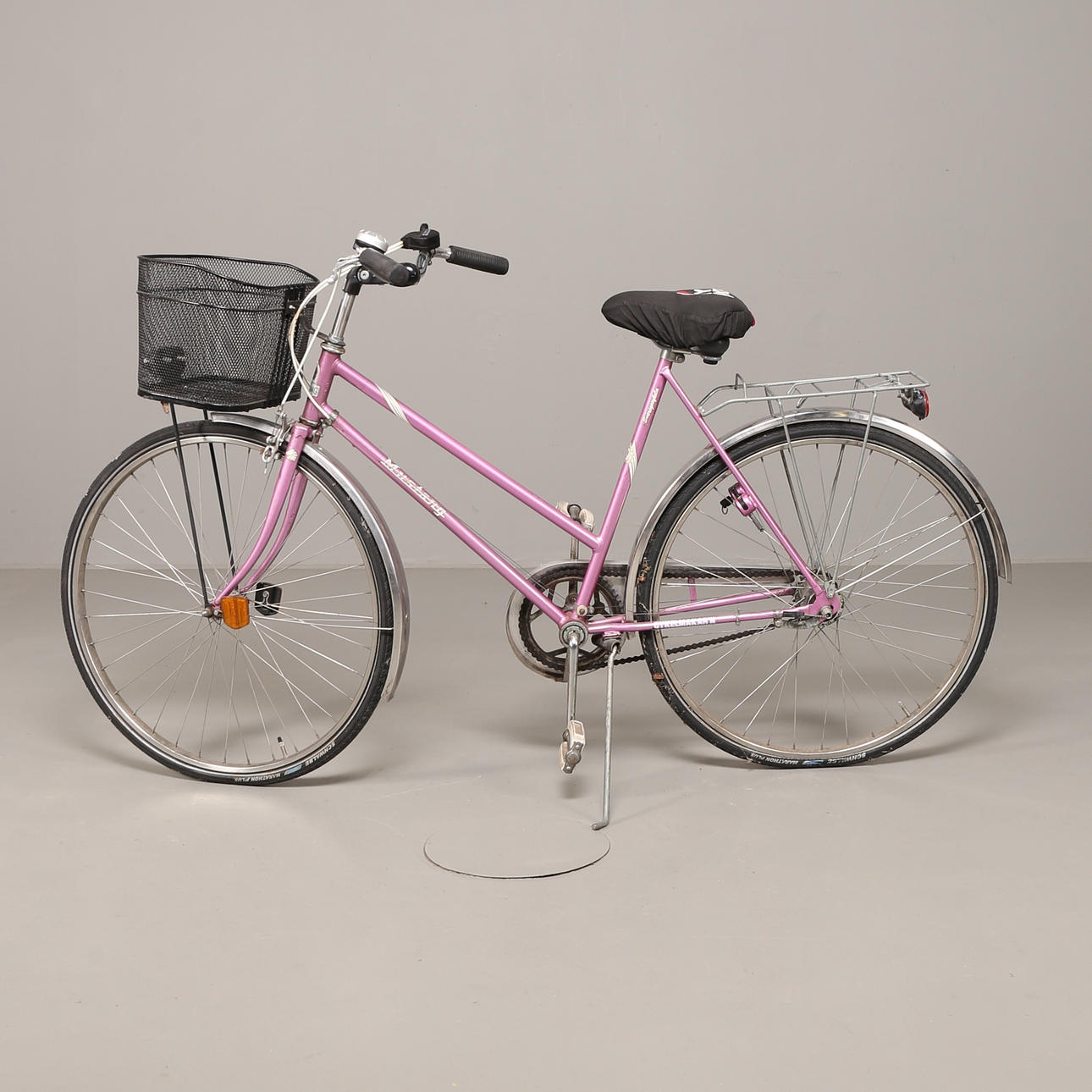 54 cm ramme. 5-gears, monteret belysning, klokke, cykelkurv og lås med tilhørende nøgle.