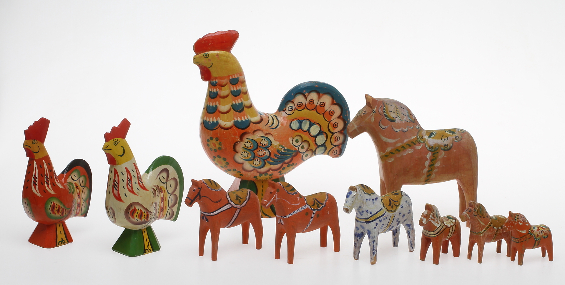 102085. Sæt HESTE, 7 stk, og DALATUPPAR, 3 stk, 1900-tallet.