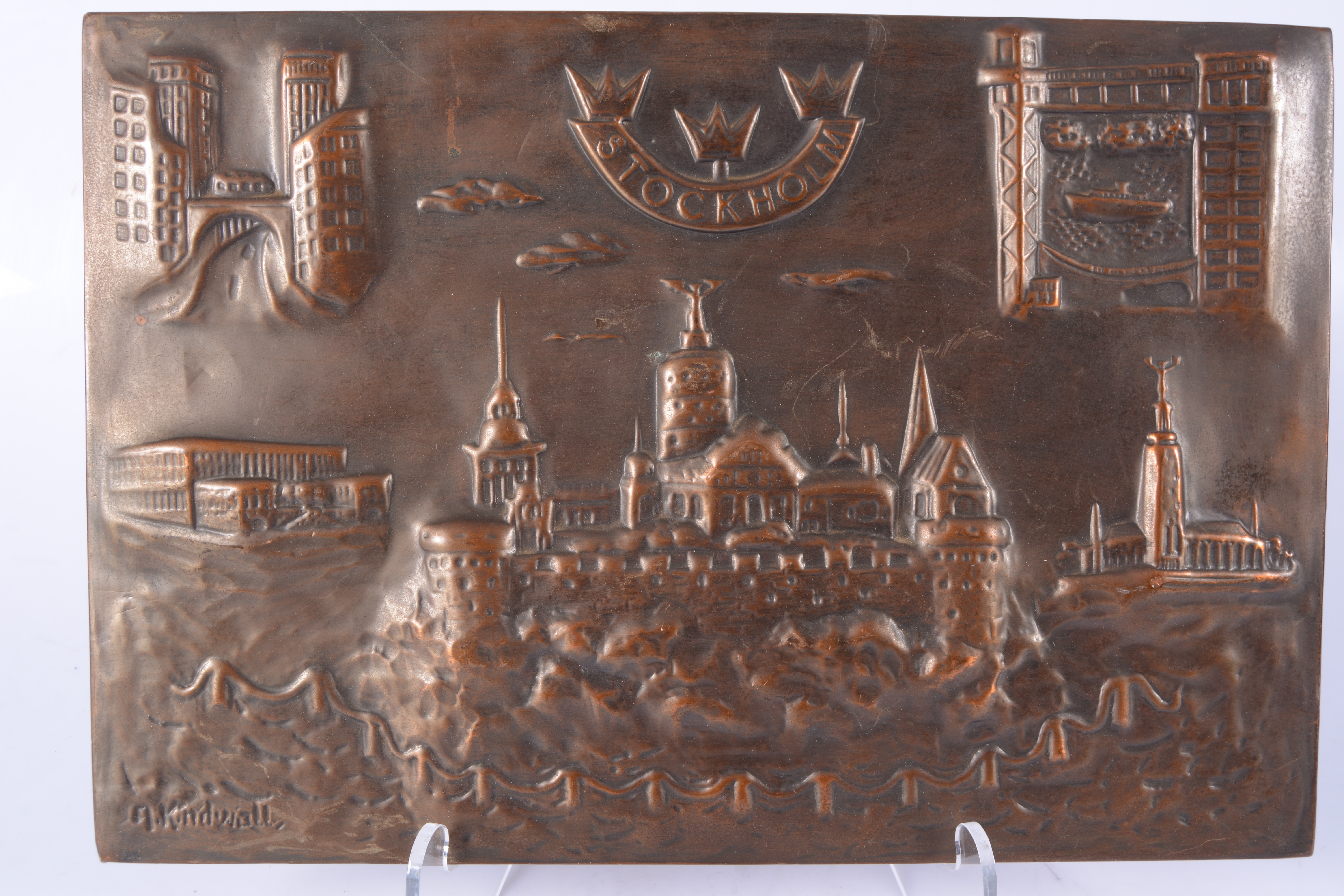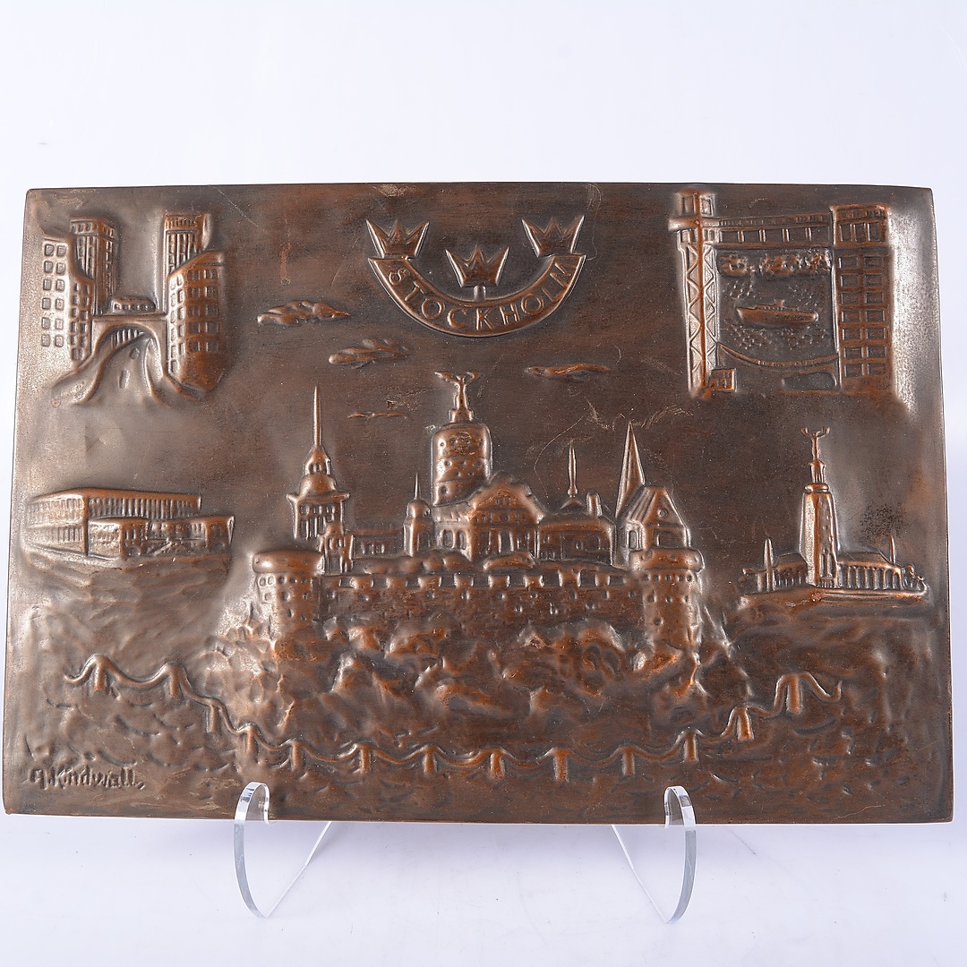 1029862. OIDENTIFIERAD KONSTNÄR. Vægplade, kobber.