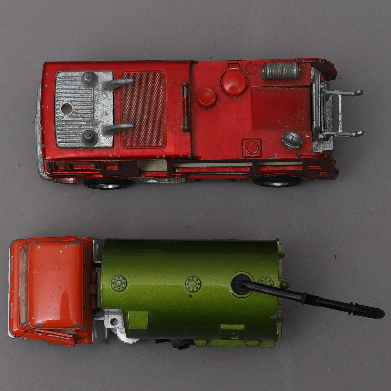 Vejfejemaskine, mærket dinky toys Johnston Road fejemaskine, ca.14 cm lang Brandbil, mærket dinky toys Meccano Ltd, Merryweather marquis fire tender 285 Pat No 920534, ca.16 cm lang.