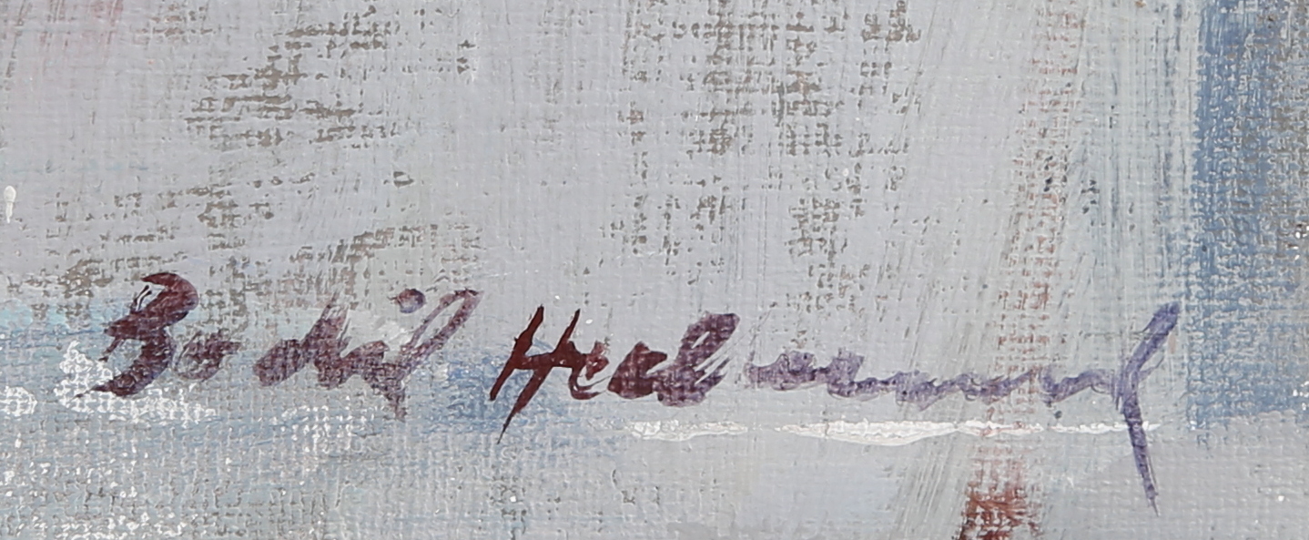 1031254. BODIL HEDLUND. Komposition, olie på lærred, signeret.