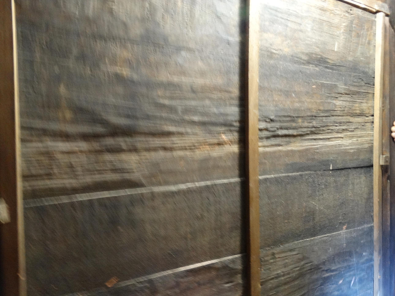 Maleri delvist stærkt beskadiget, aldersrelaterede brugsspor.