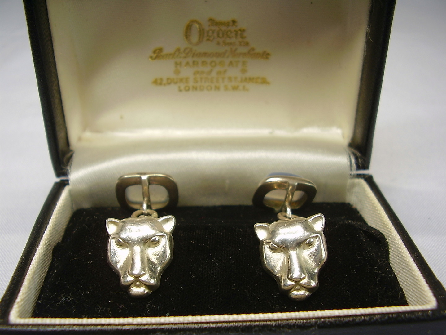 1035510. PANTHER MANCHENTKNAPPE SØLV ANTIK.
