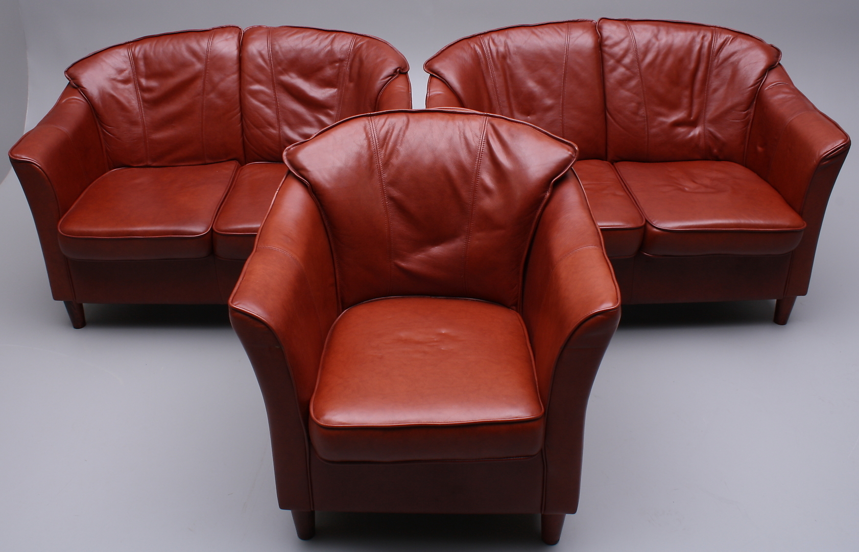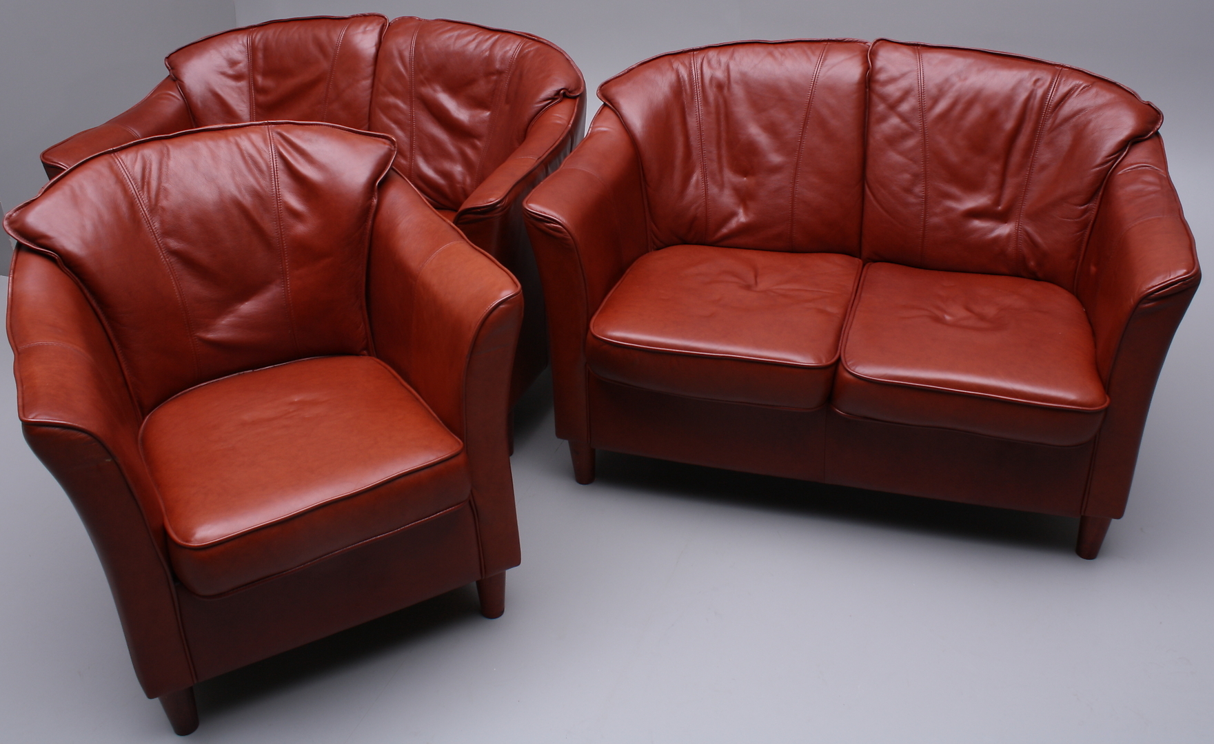 103685. MØBELGRUPPE, 3 dele, brunt læder.