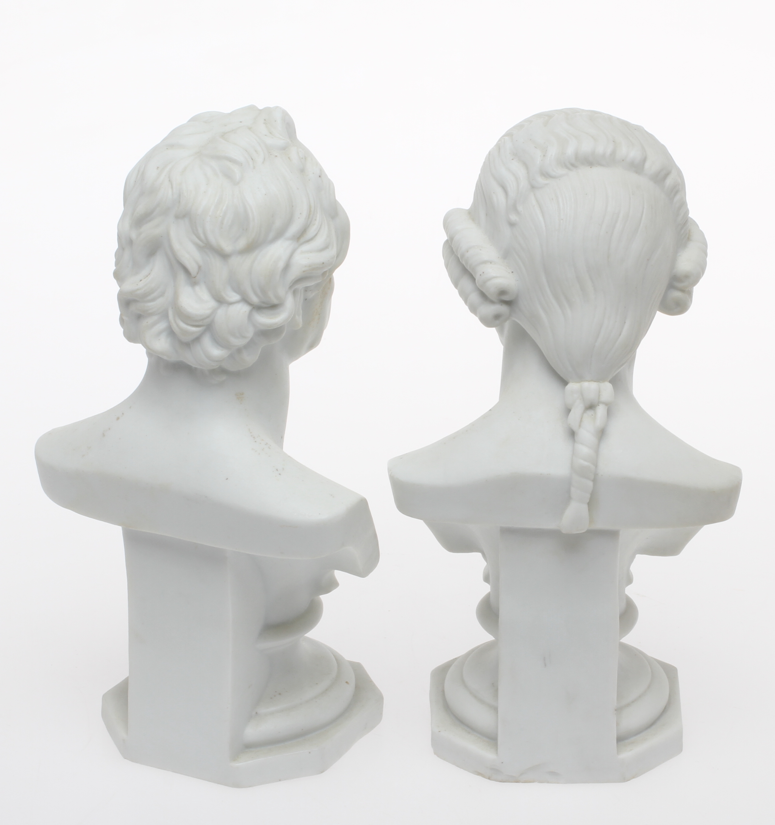 103789. BYSTER, 2 stk., parian, 20. århundrede.