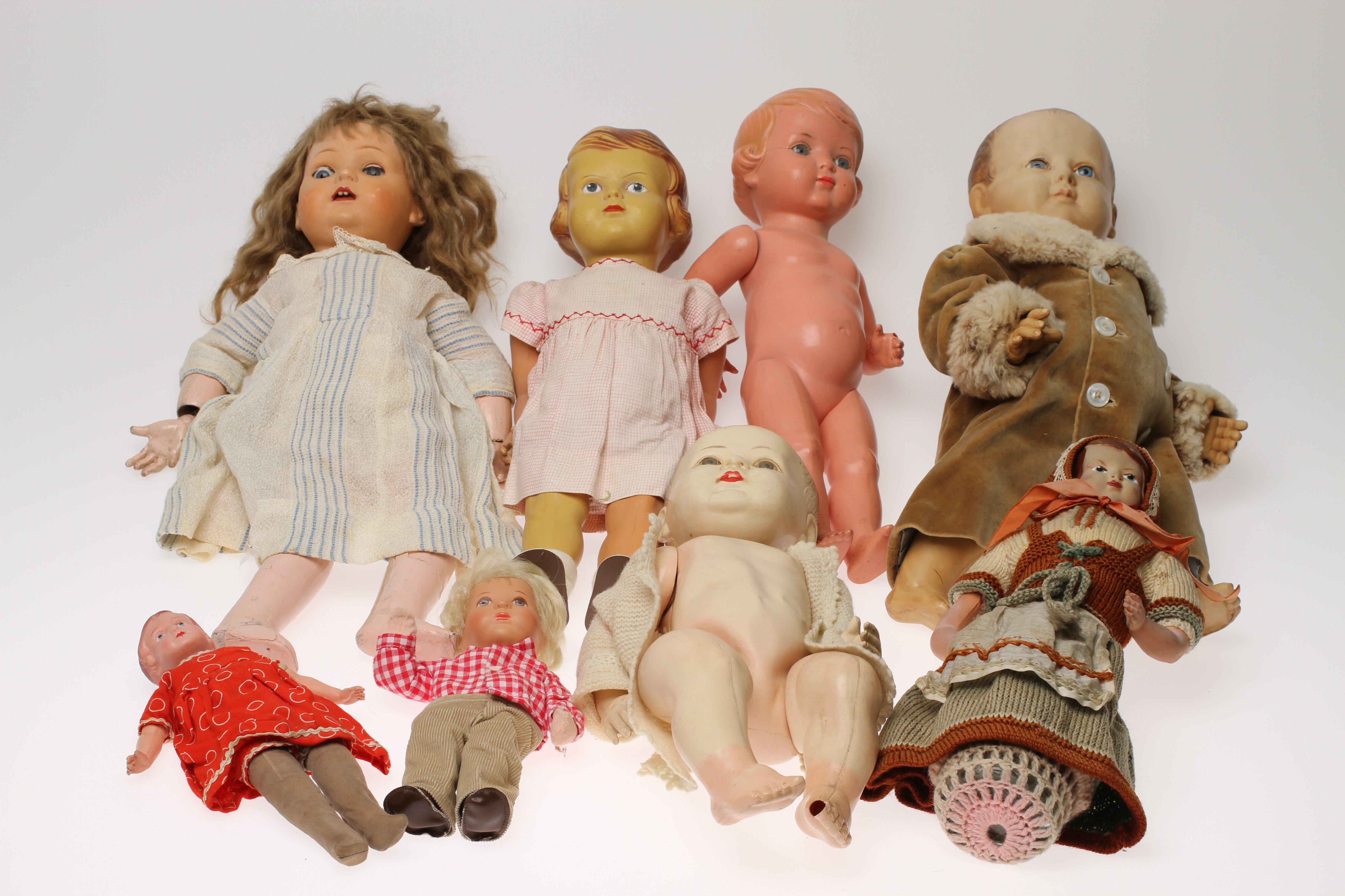 10380. CELLULOIDDUKKER 8 stykker, skildpadde og andre.