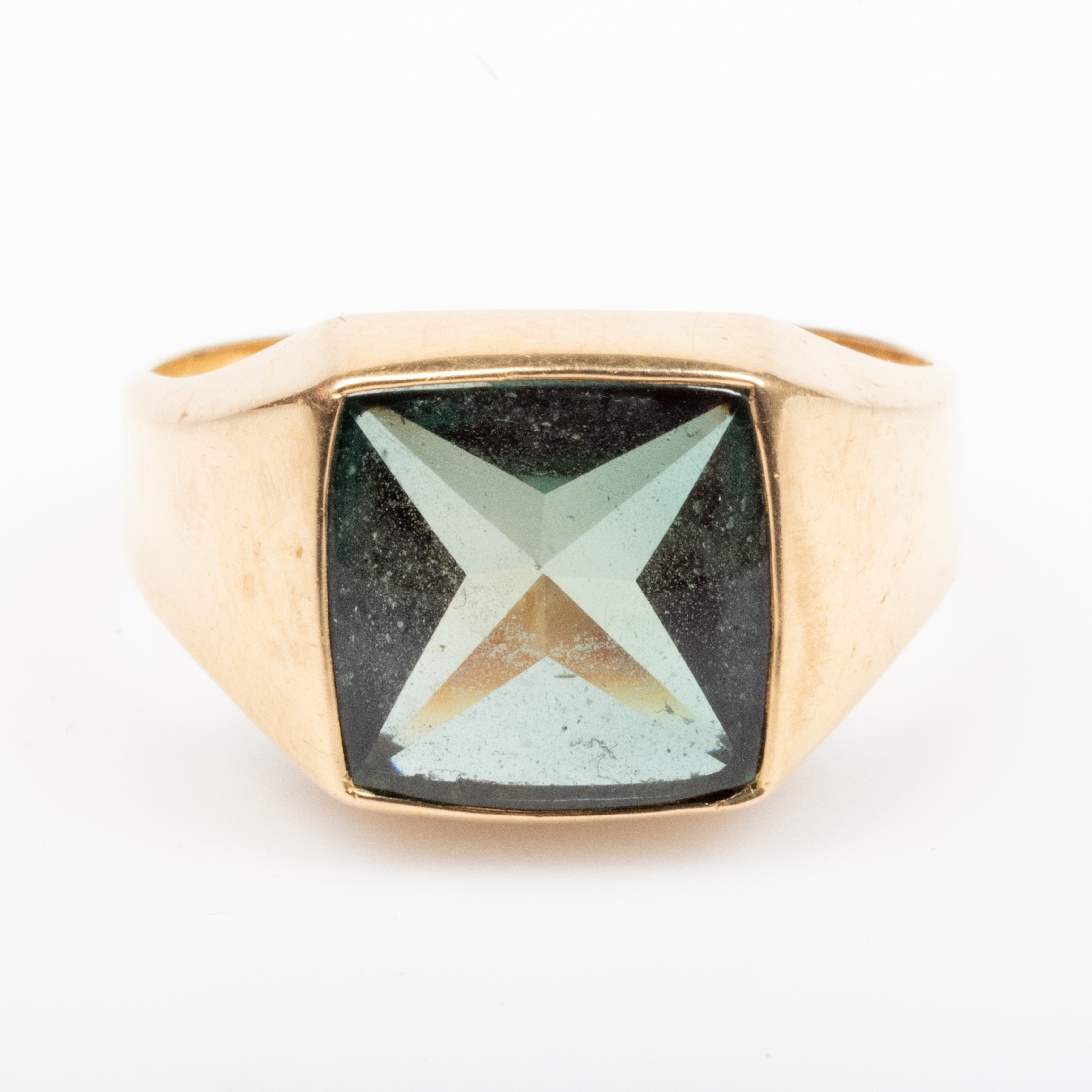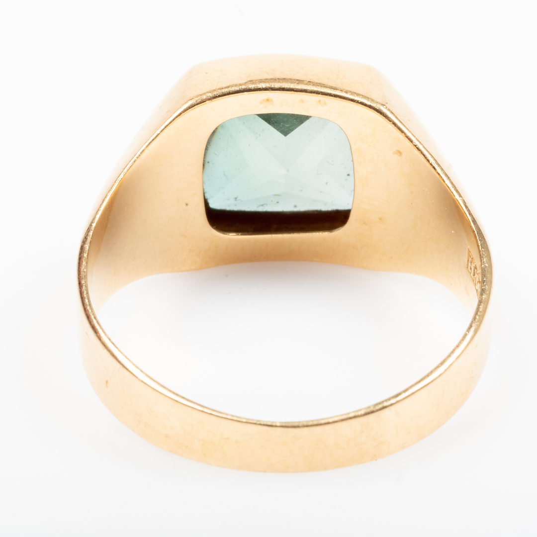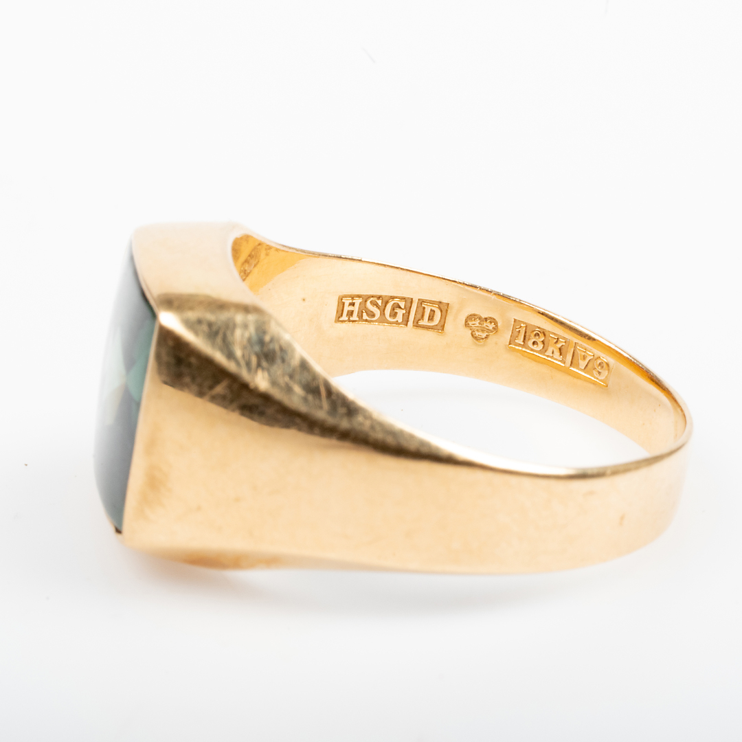 1049257. RING, 18K guld med grøn sten.