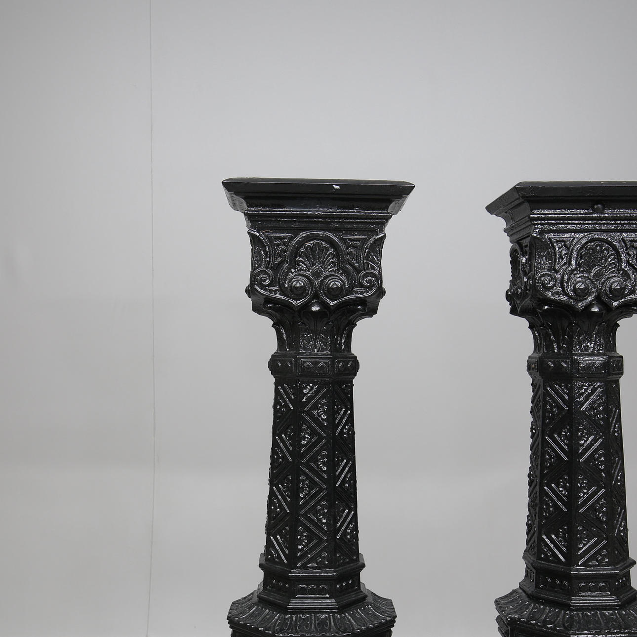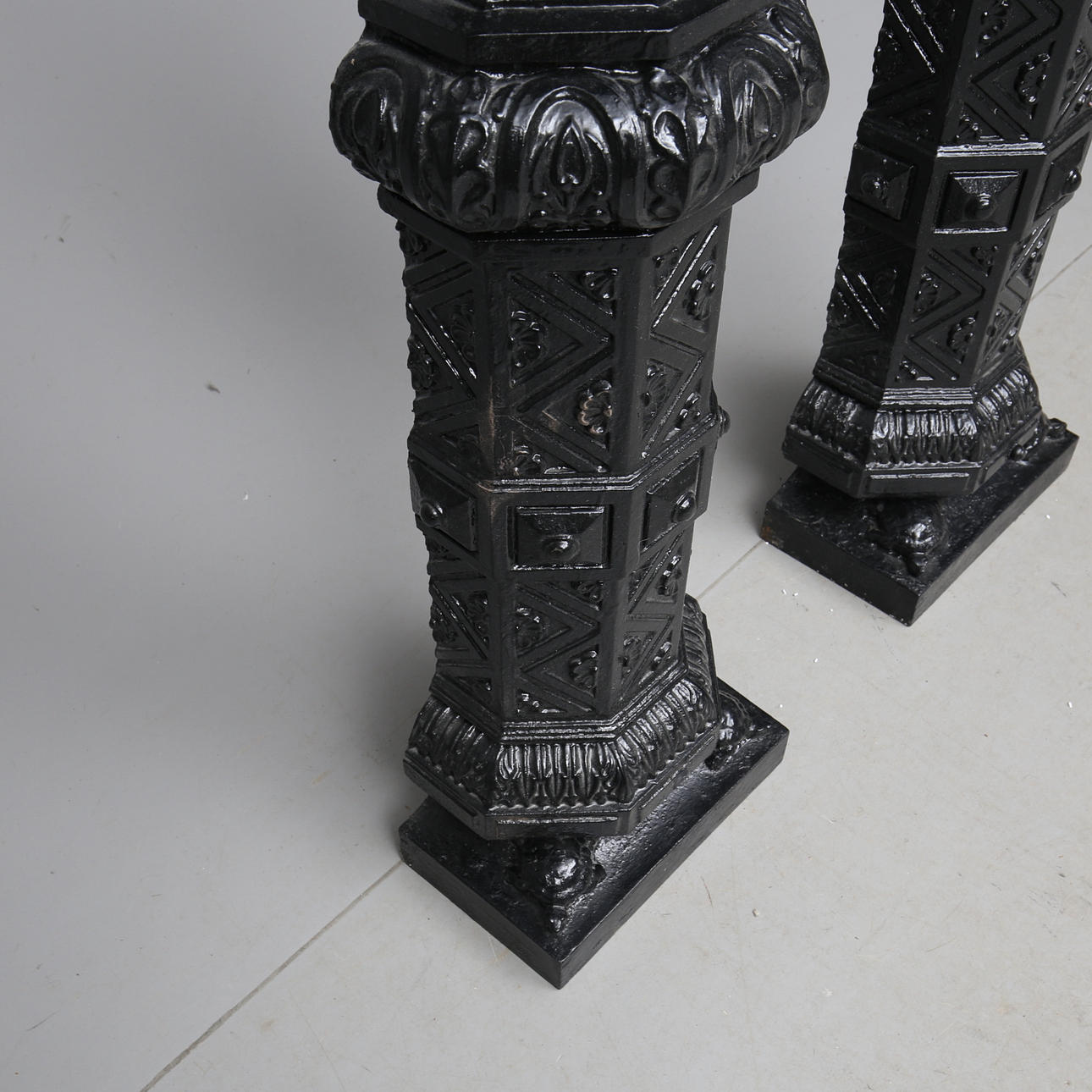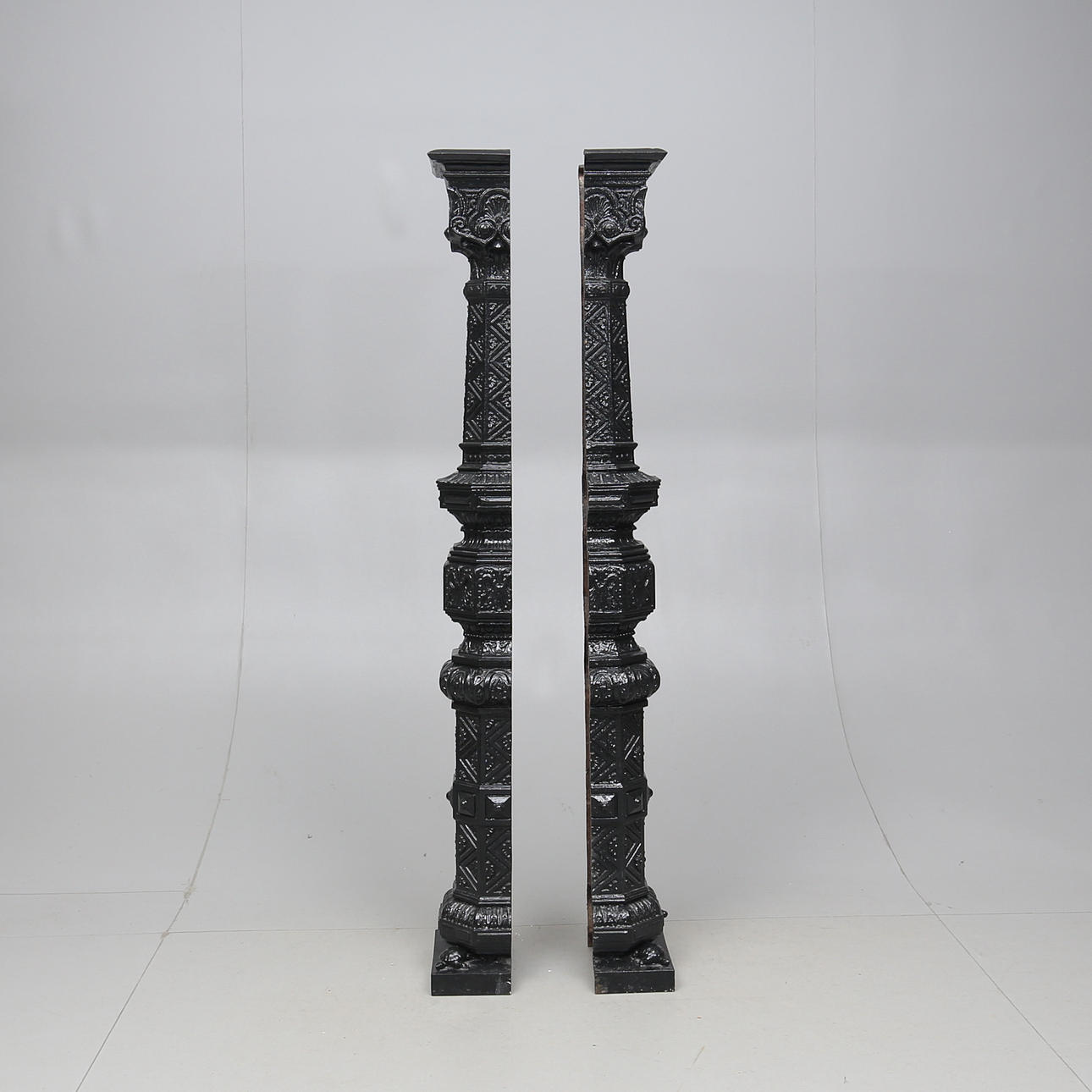Ifølge oplysninger: to ud af oprindeligt 8 kommer fra Hamburger Börs og har stået som indretning dels i Moriska Cafeèt indtil 1920, senere også i Stora matsalen indtil bygningen blev revet ned i 1971. Søjlerne blev støbt hos Meyers Styckgjuteri, den tidligere ejer af søjlerne tilhørte den familie, der ejede Hamburger Börs i dele af det 20. århundrede.