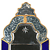 Forgyldt. Facetteret spejlglas. Blåt indrammet glas. Originalt bagomslag. 63 x 30,5 cm.
