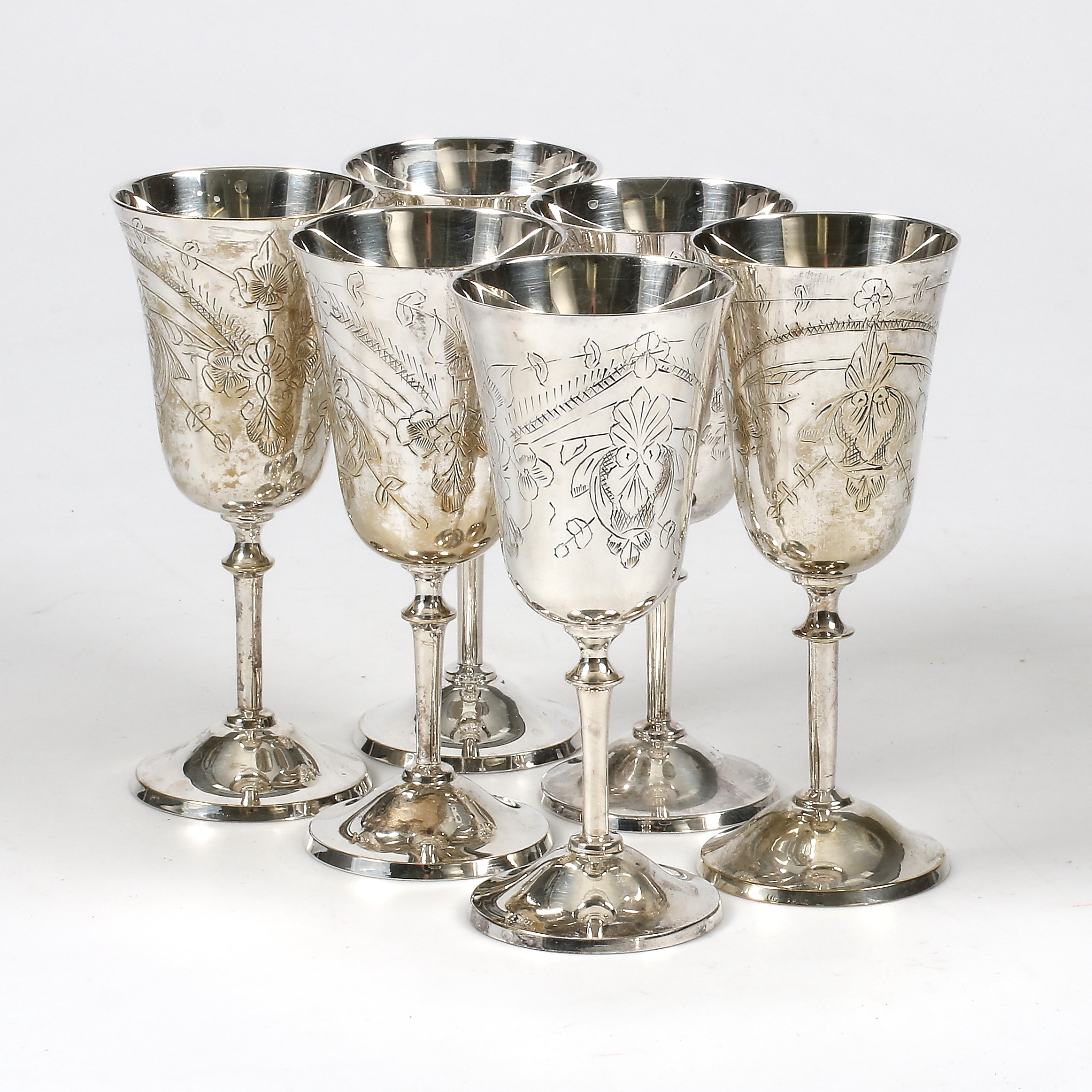1060090. VINGLAS, 6 stk. nysølv, 20. århundrede.