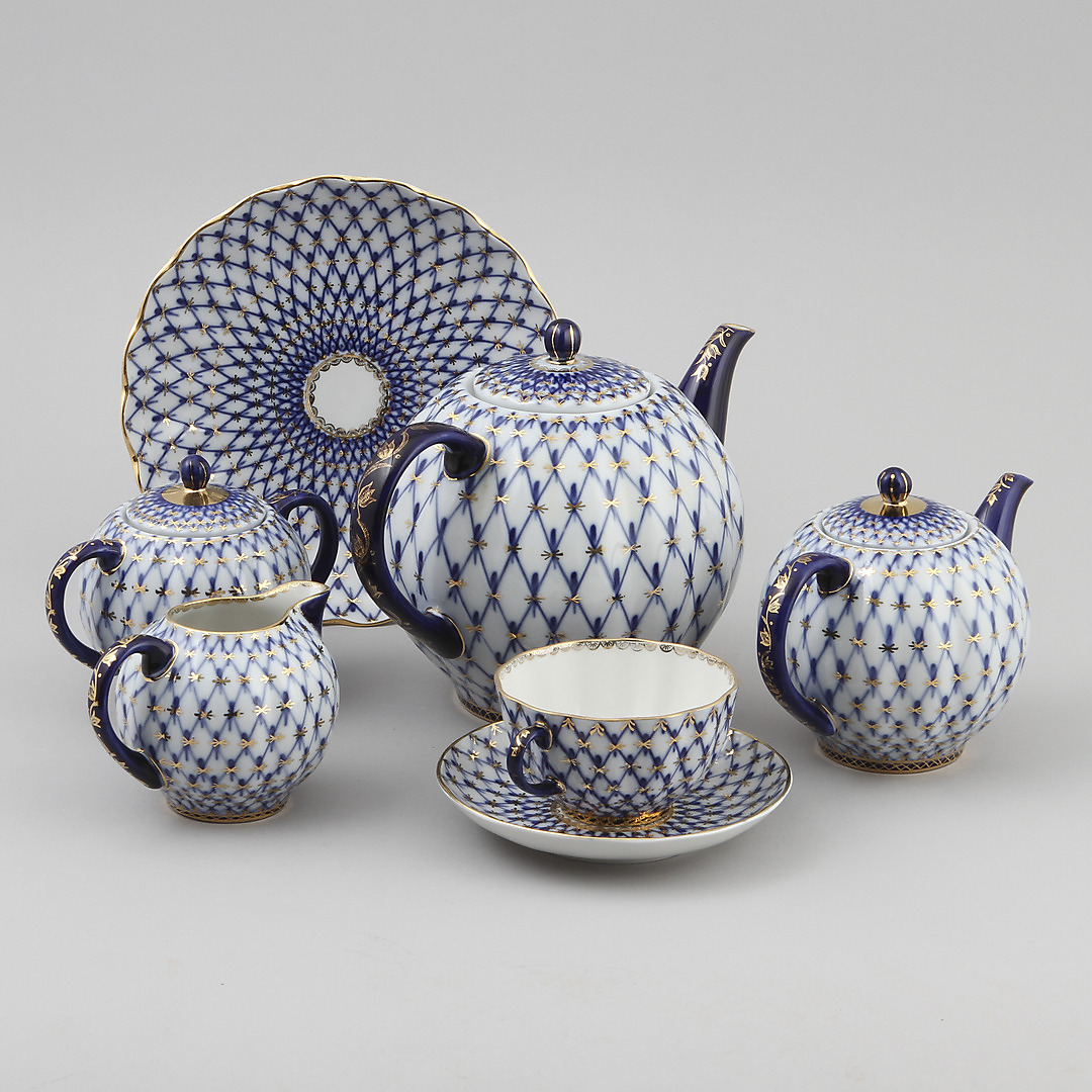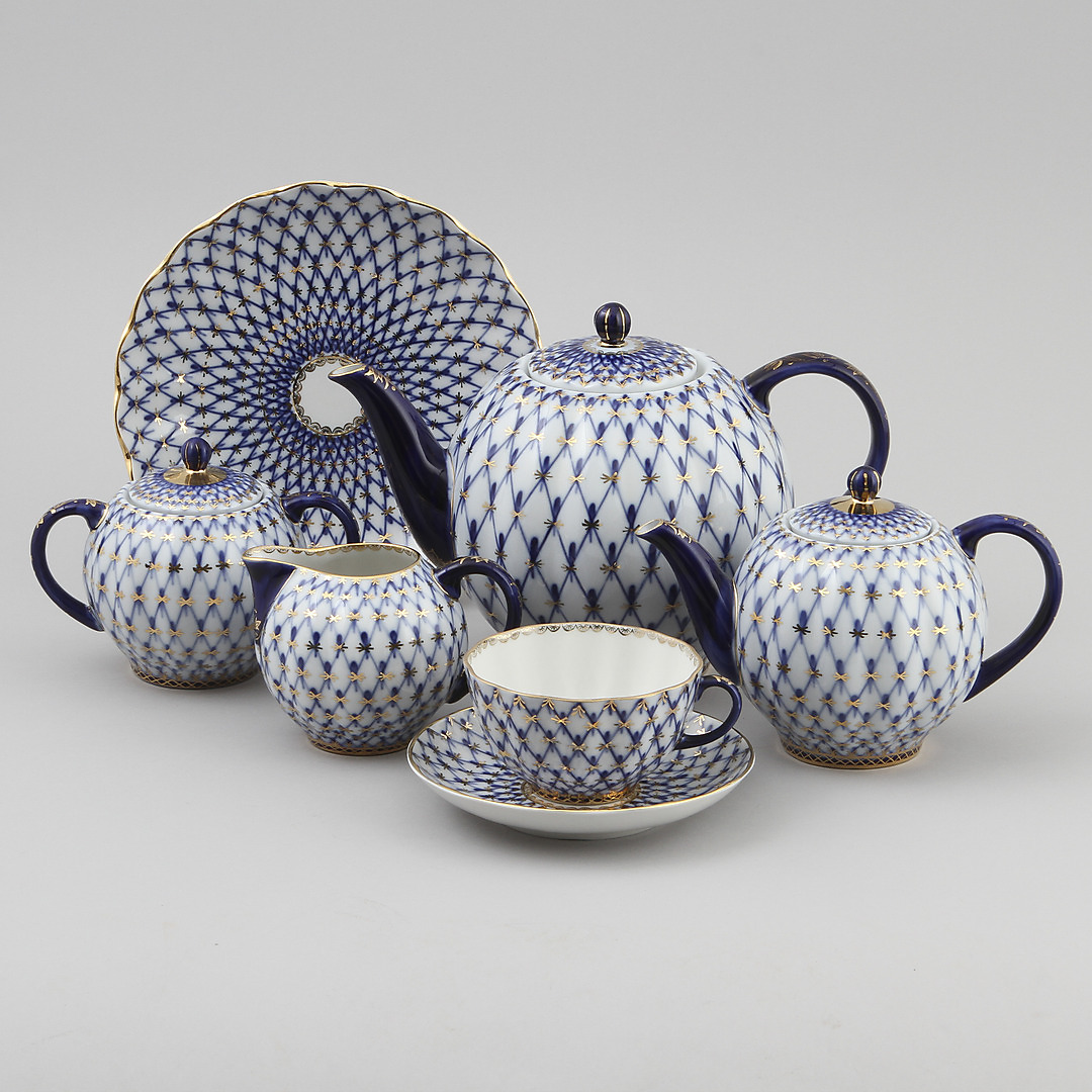 106612. TESERVIS, 17 dlr. Lomonsov Porcelænsfabrik. "Cobolt net".