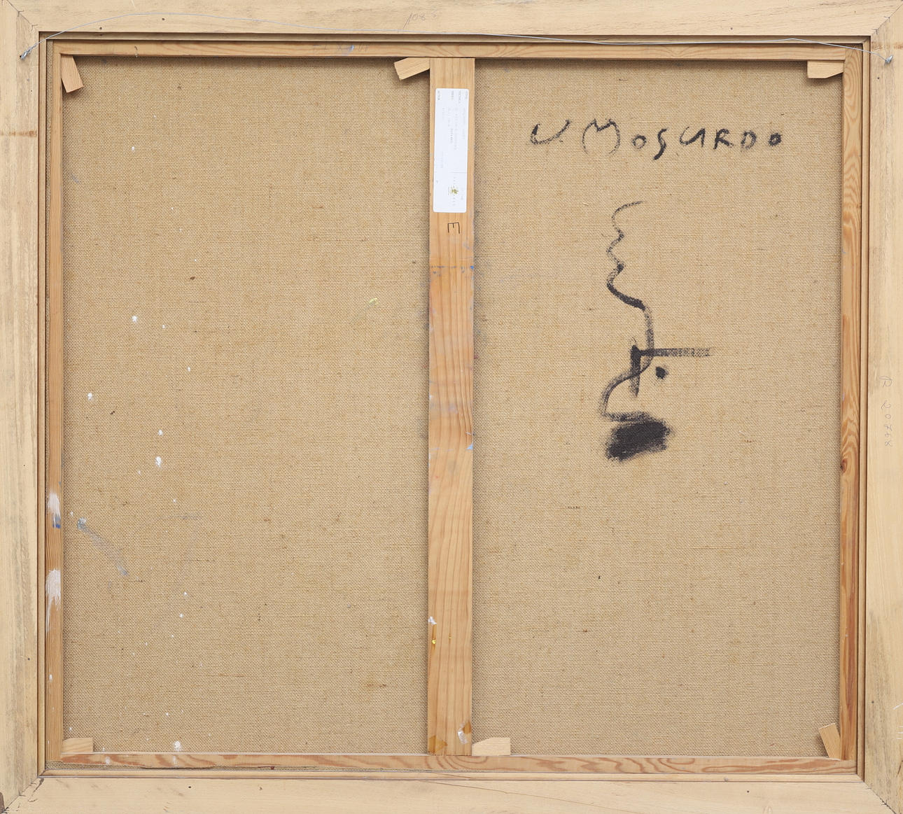 Olie på lærred Signeret. På bagsiden, signeret. På rammen identificerer en etiket forfatteren og titel værket 97x107 cm.