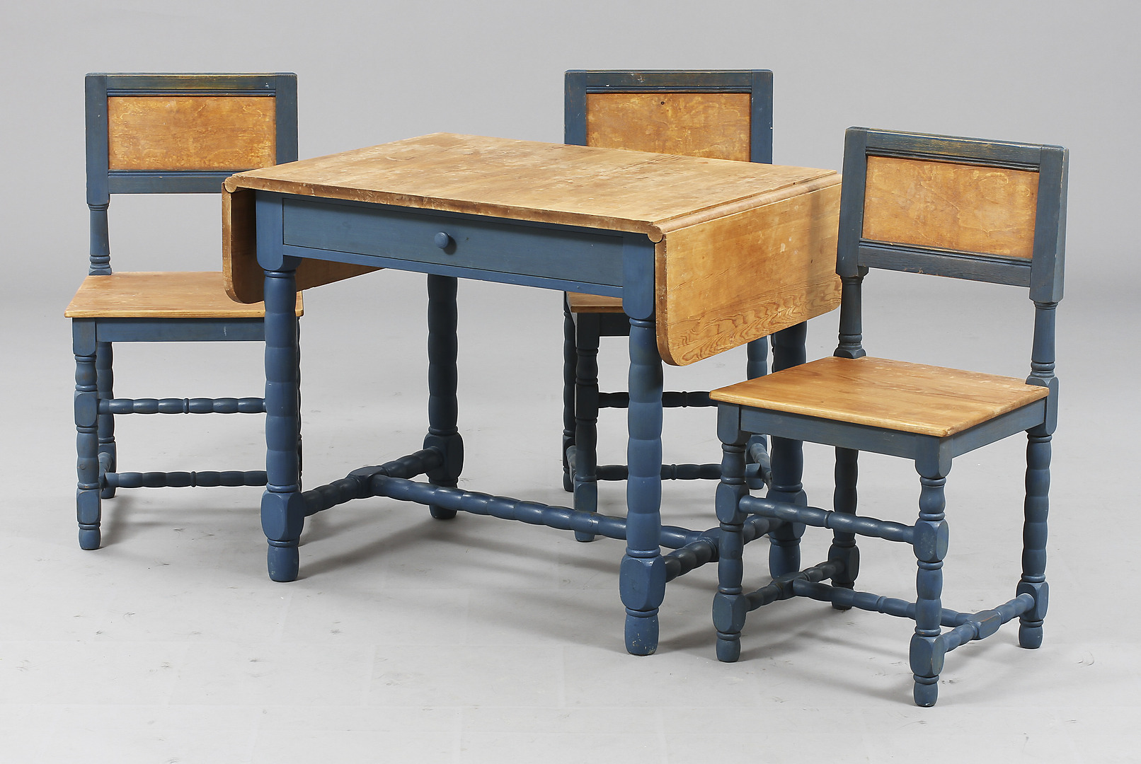 109040. BORD OG 3 STOLE, barokstil, 20. århundrede.
