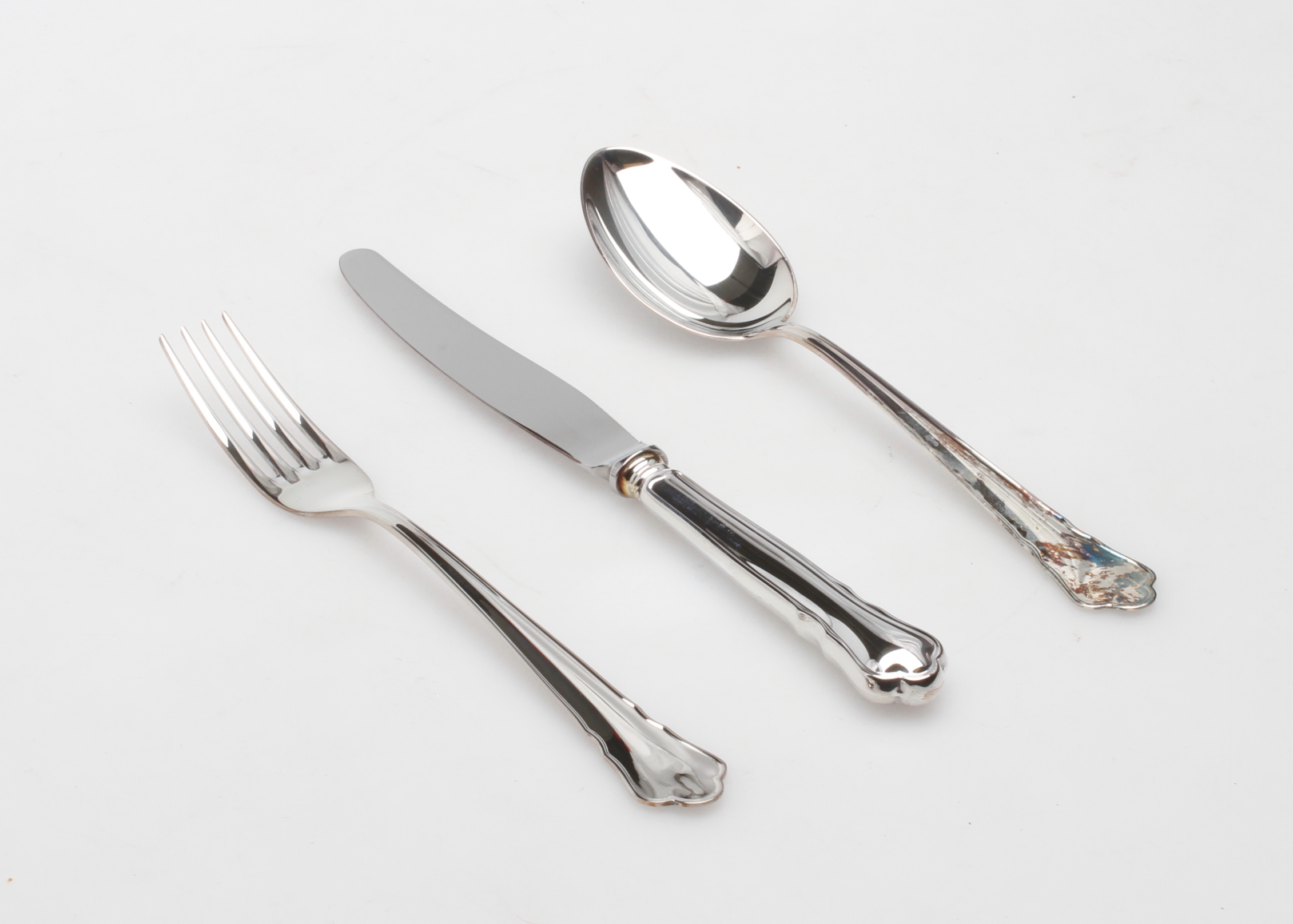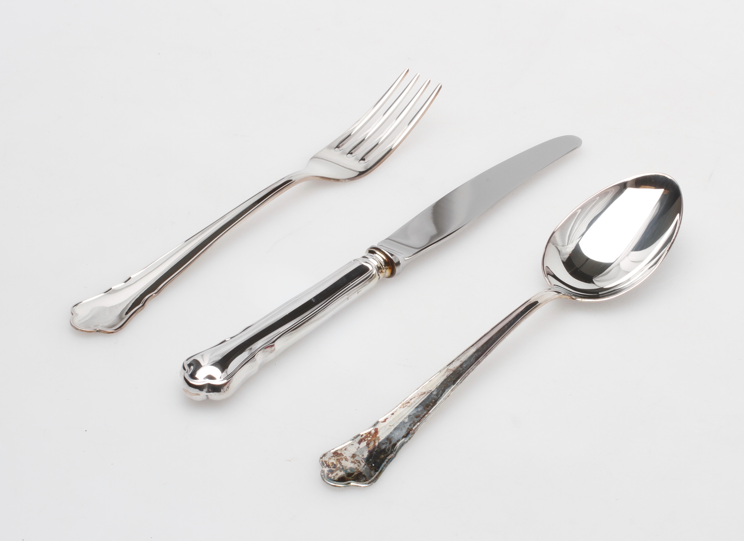 109911. BESTIK, 3 stk, sølv, "Chippendale", Mema.