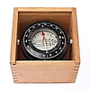 Kompas i trækasse med instruktionsbog, højde 9,5 cm.