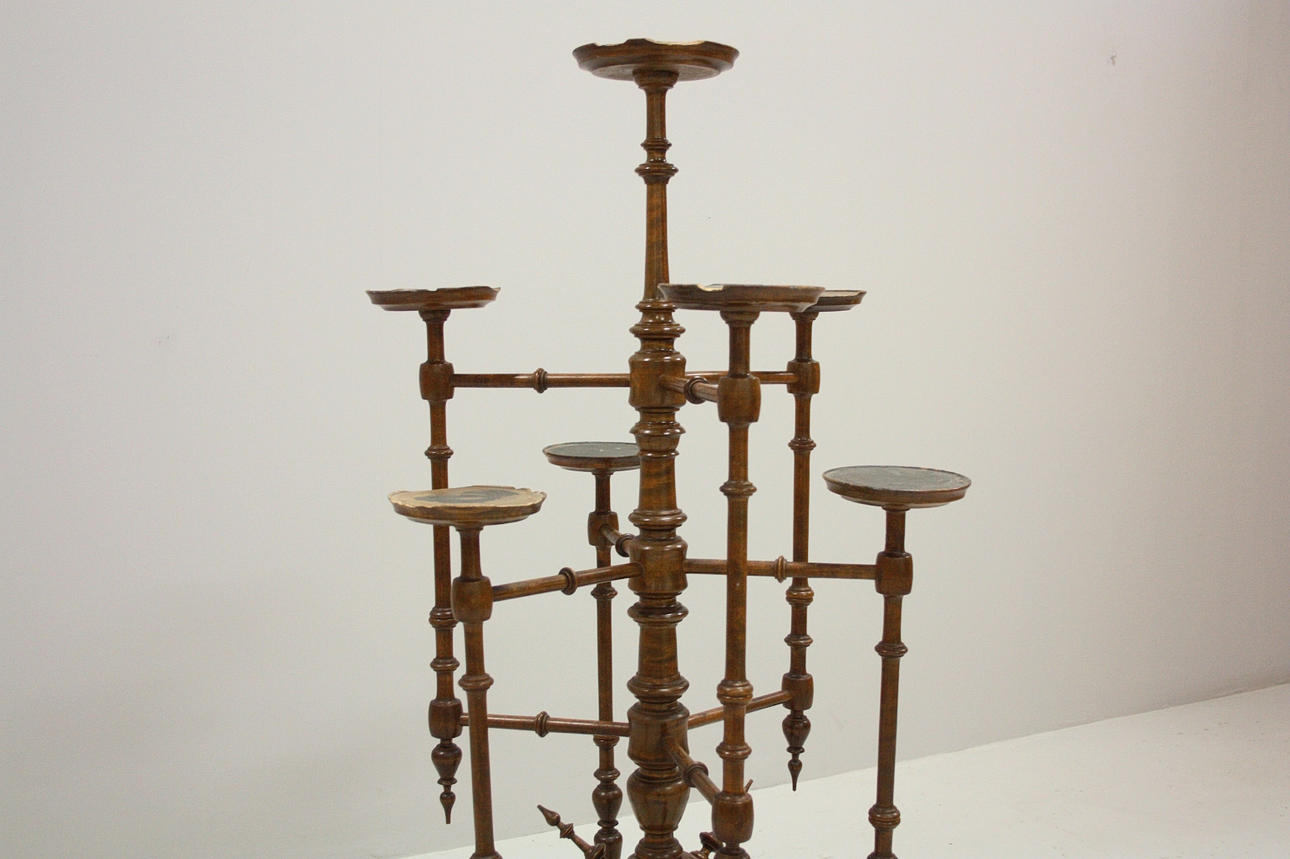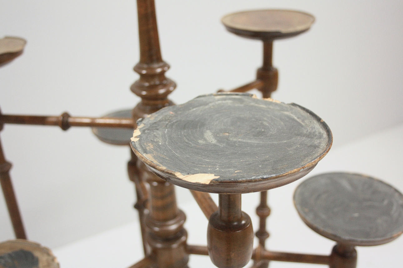 7-armet, drejet og bejdset, Højde 133 cm.