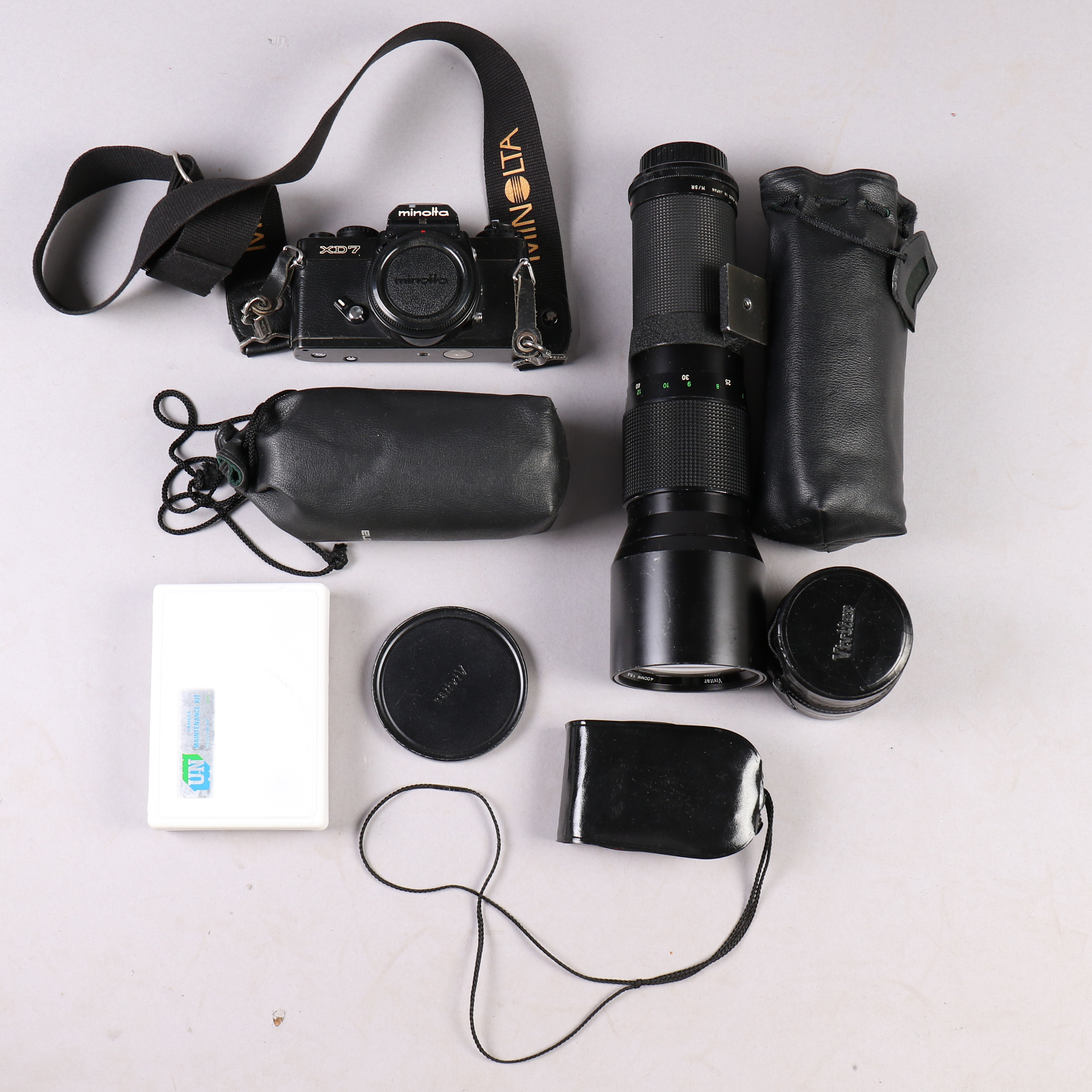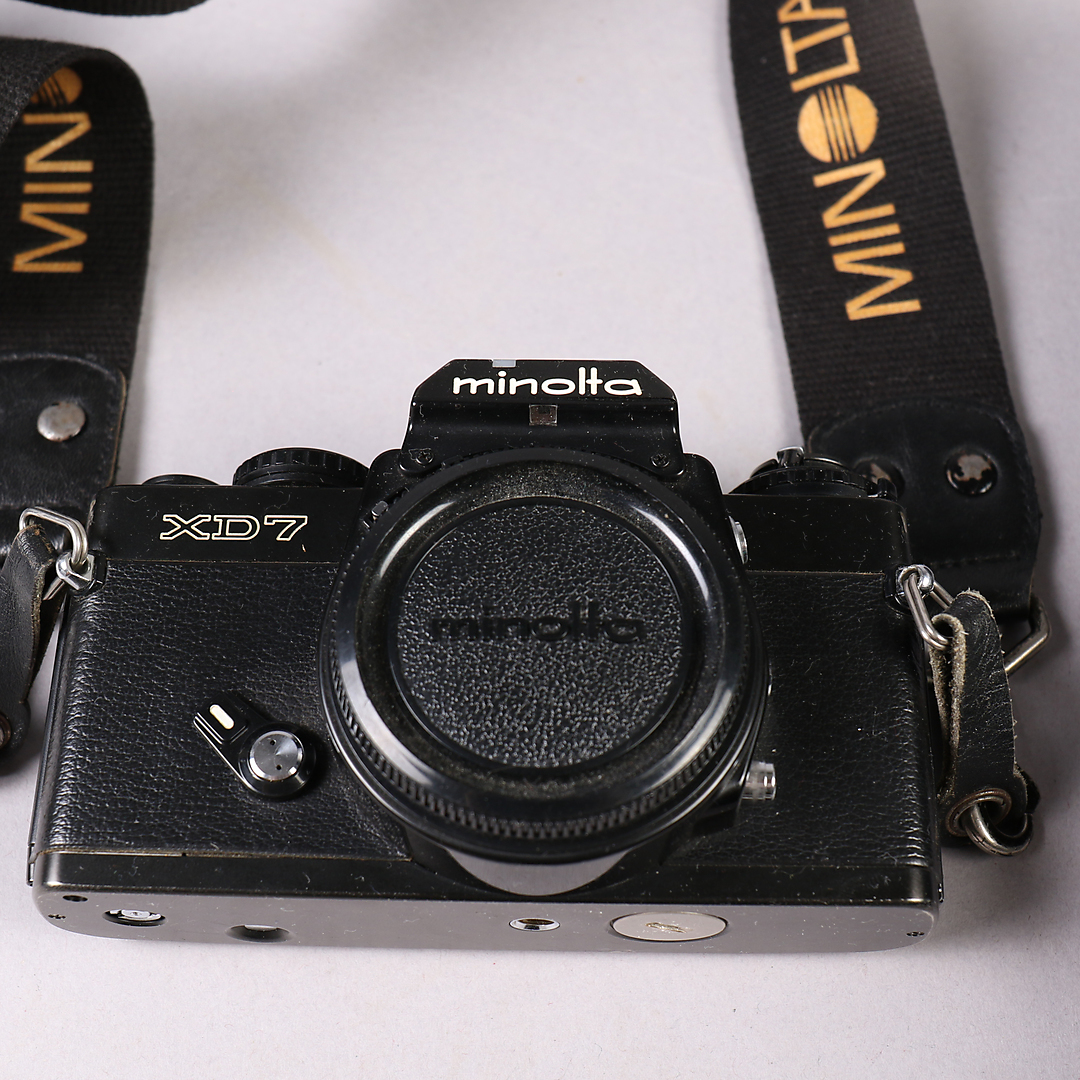 1103746. MINOLTA XD7 kamera, inkl. 4 linser osv.