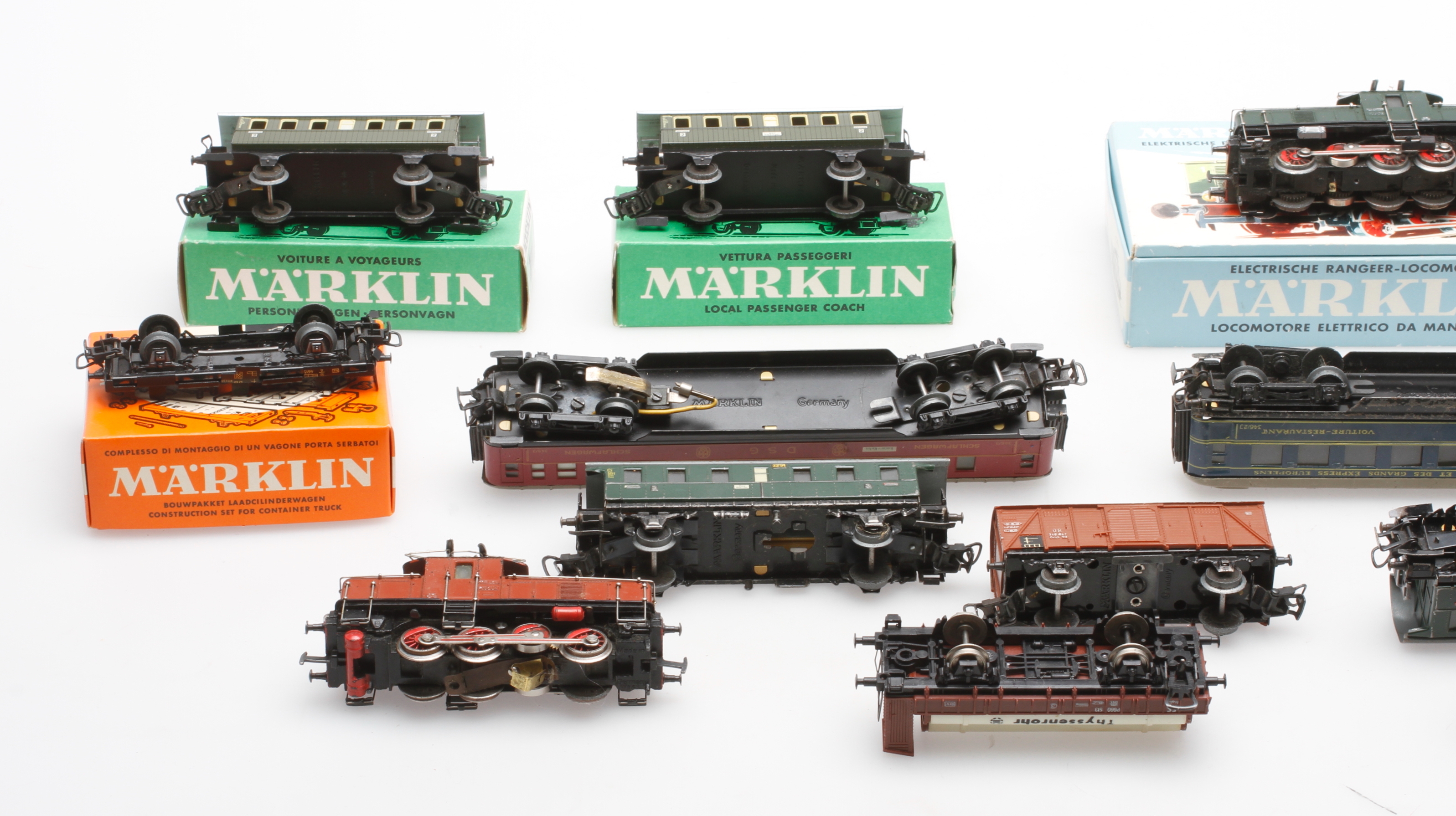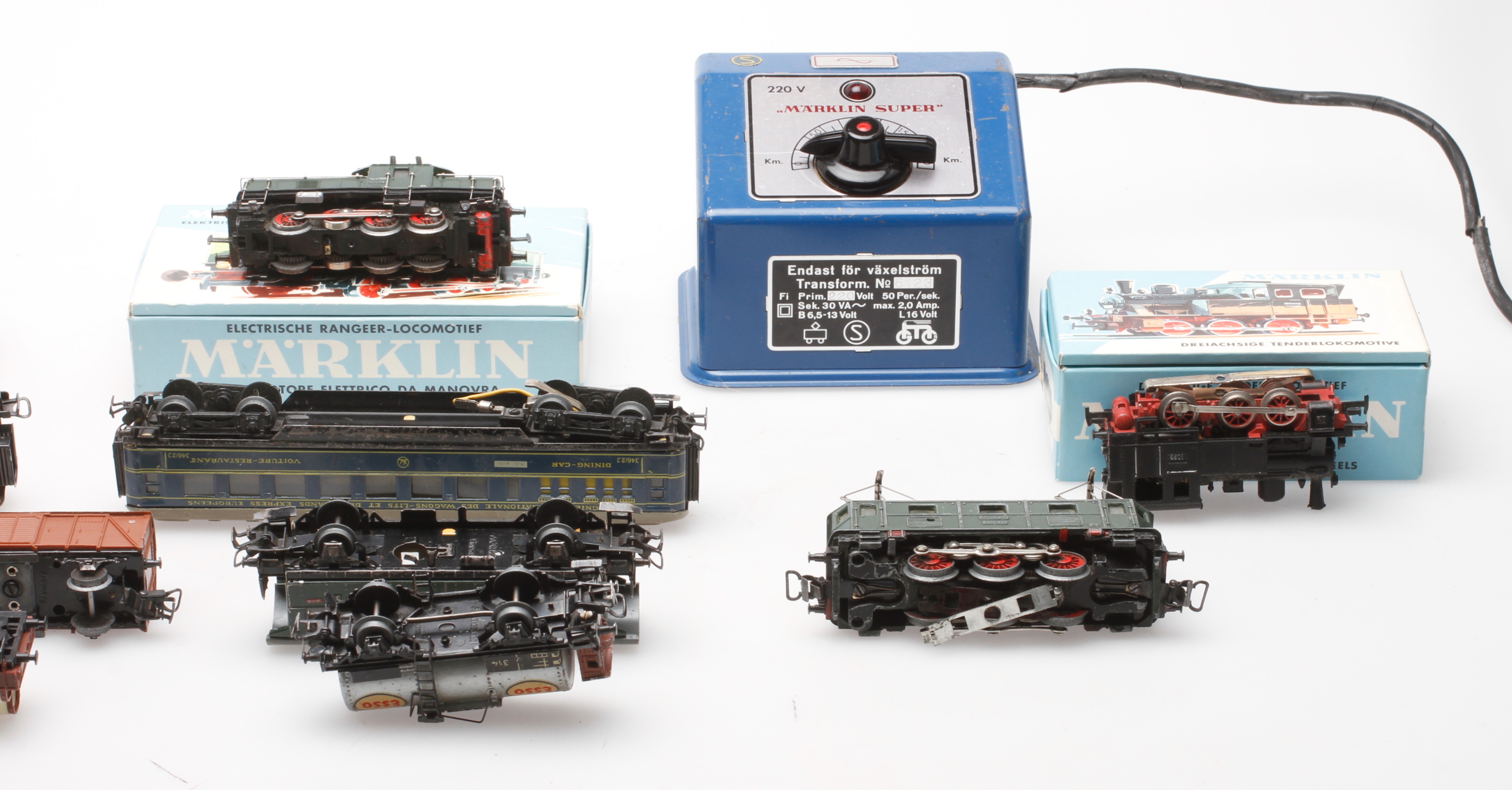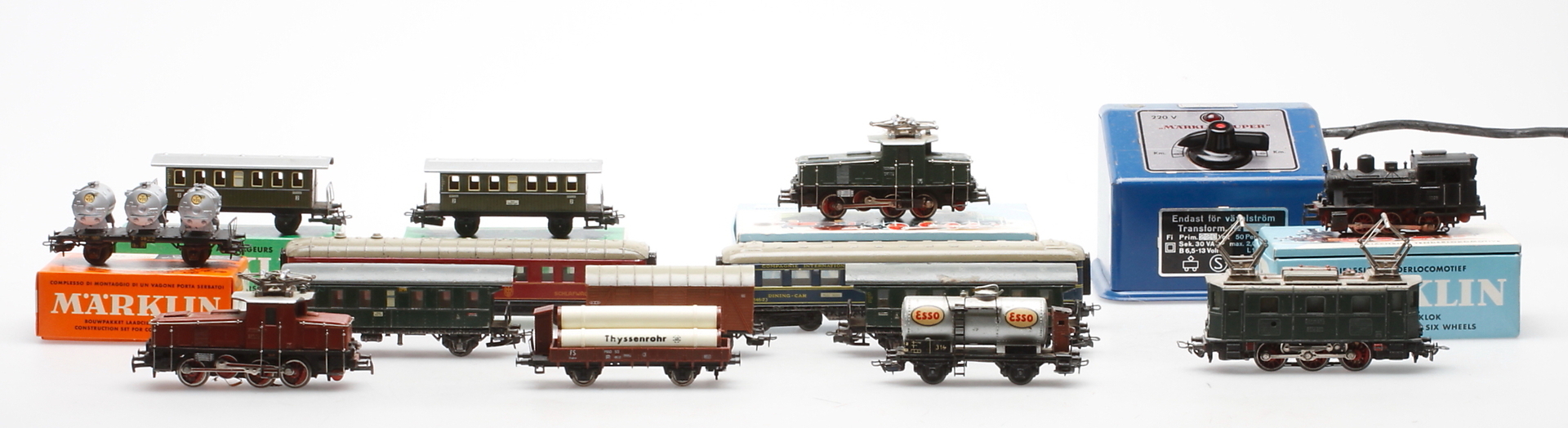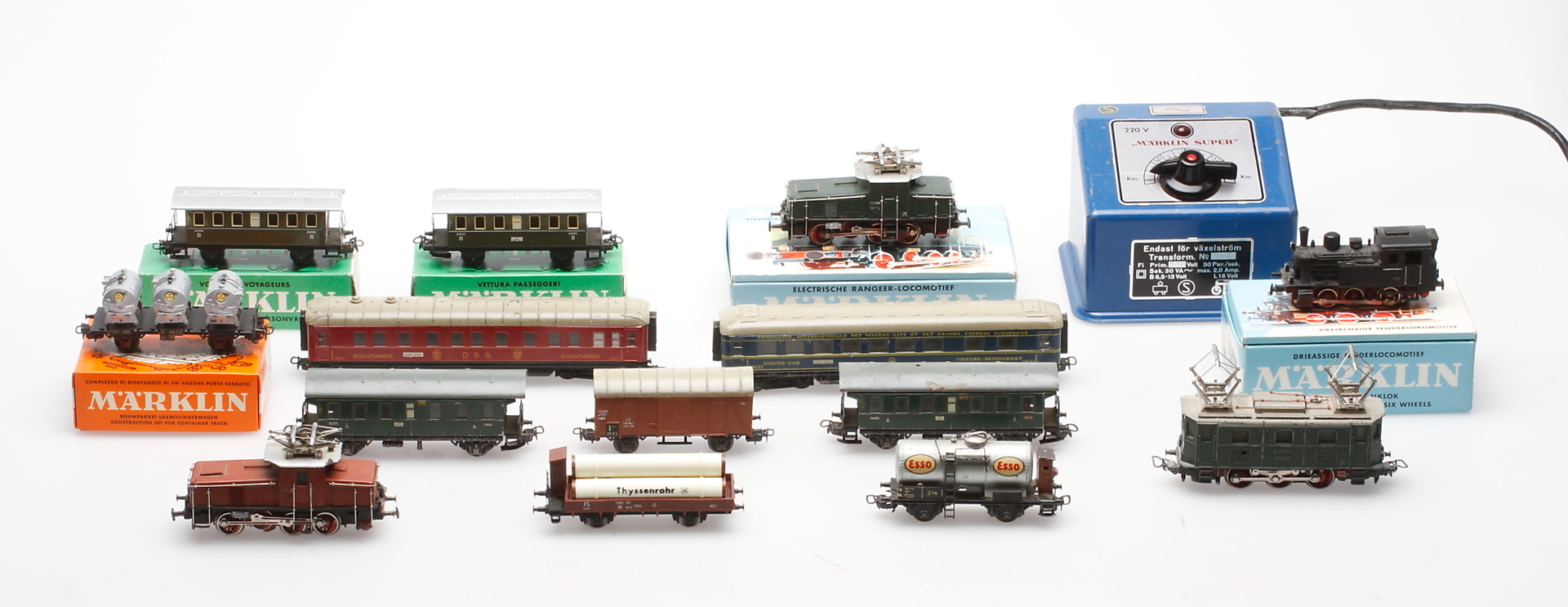 110904. MODEL TOG OG TROLLEYS, 14 dele.
