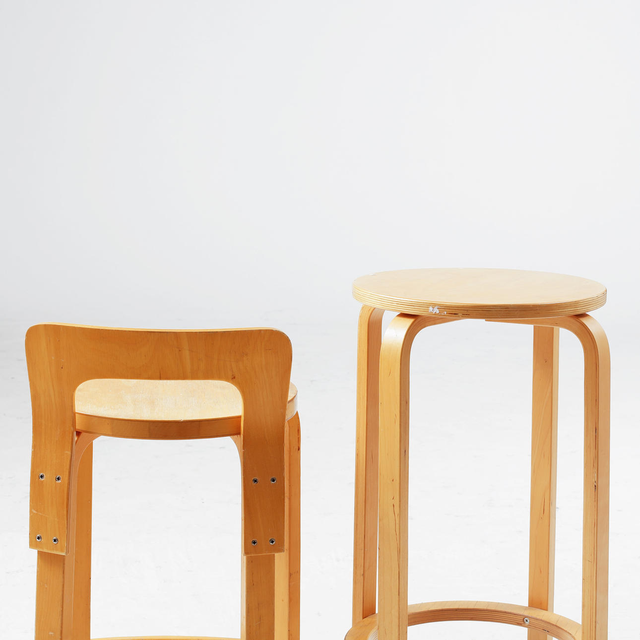 1110726. ALVAR AALTO. Taburet K65, samt barstol.