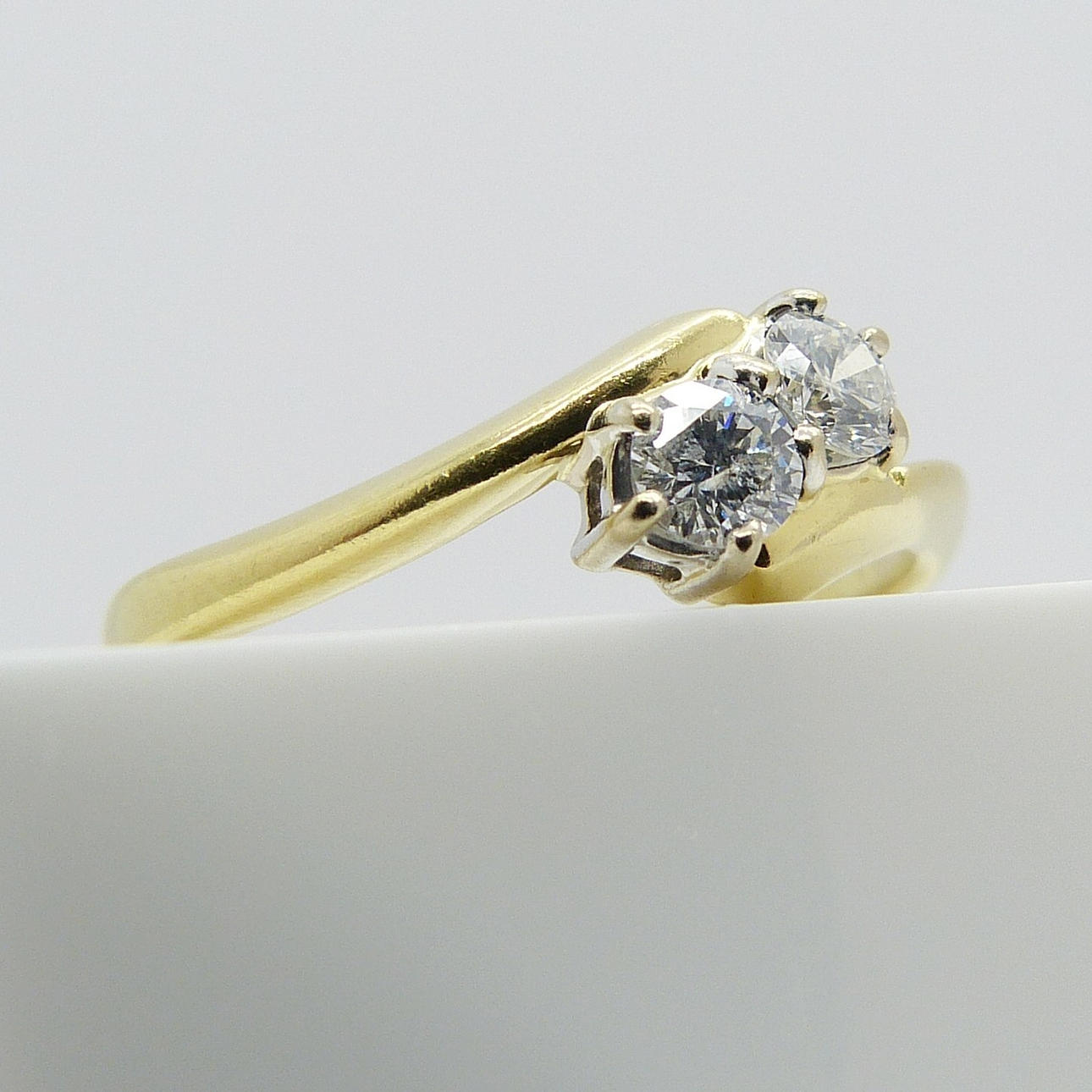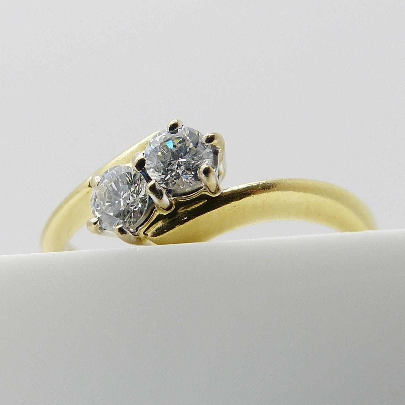 2 x runde, brillantslebne diamanter er sat i denne ring, hver holdt i 5 kløer.