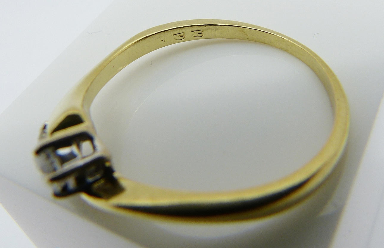 Denne ring er 18 karat gult guld (stemplet).
