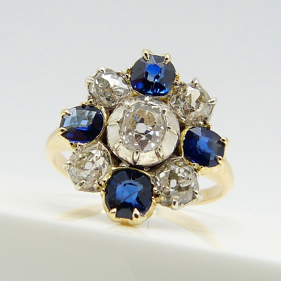 1118137. VINTAGE DIAMANT & SAPPIRRING.