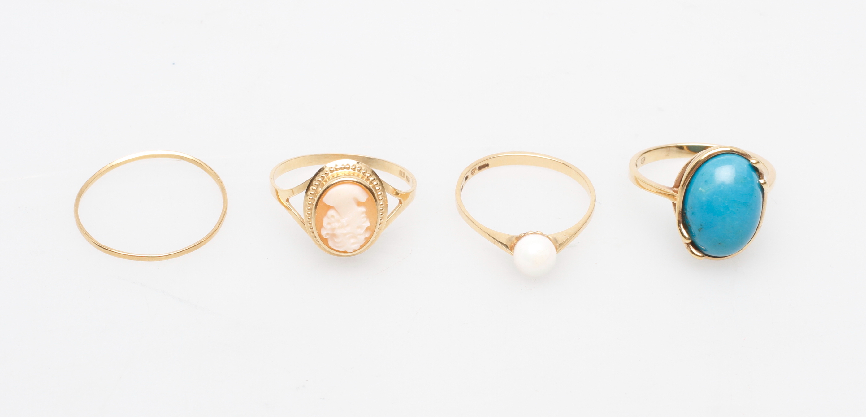 111869. RINGE, 4 stk, 18k guld, vægt ca. 6,8 gr.