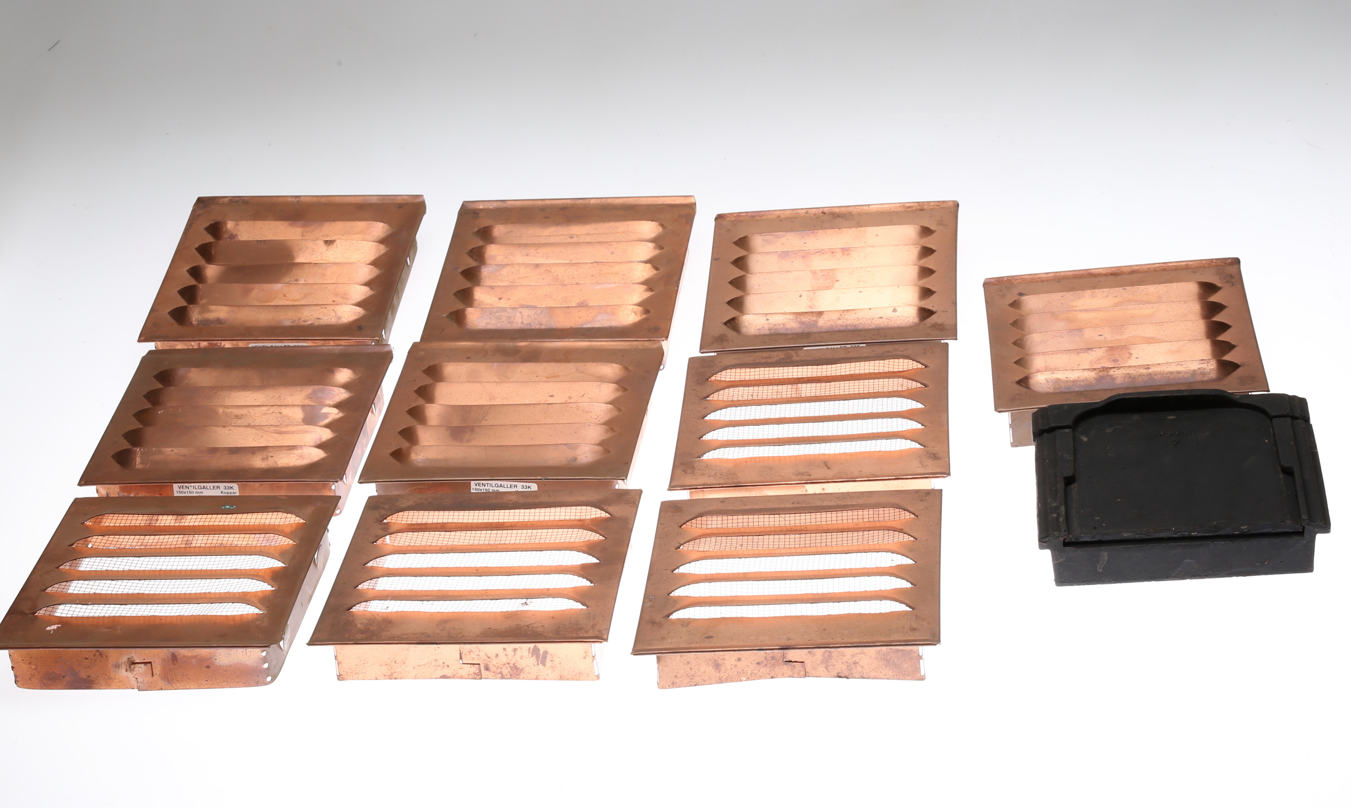 1123553. VENTILATIONSGRILL, 10 kobber, 1 støbejern.