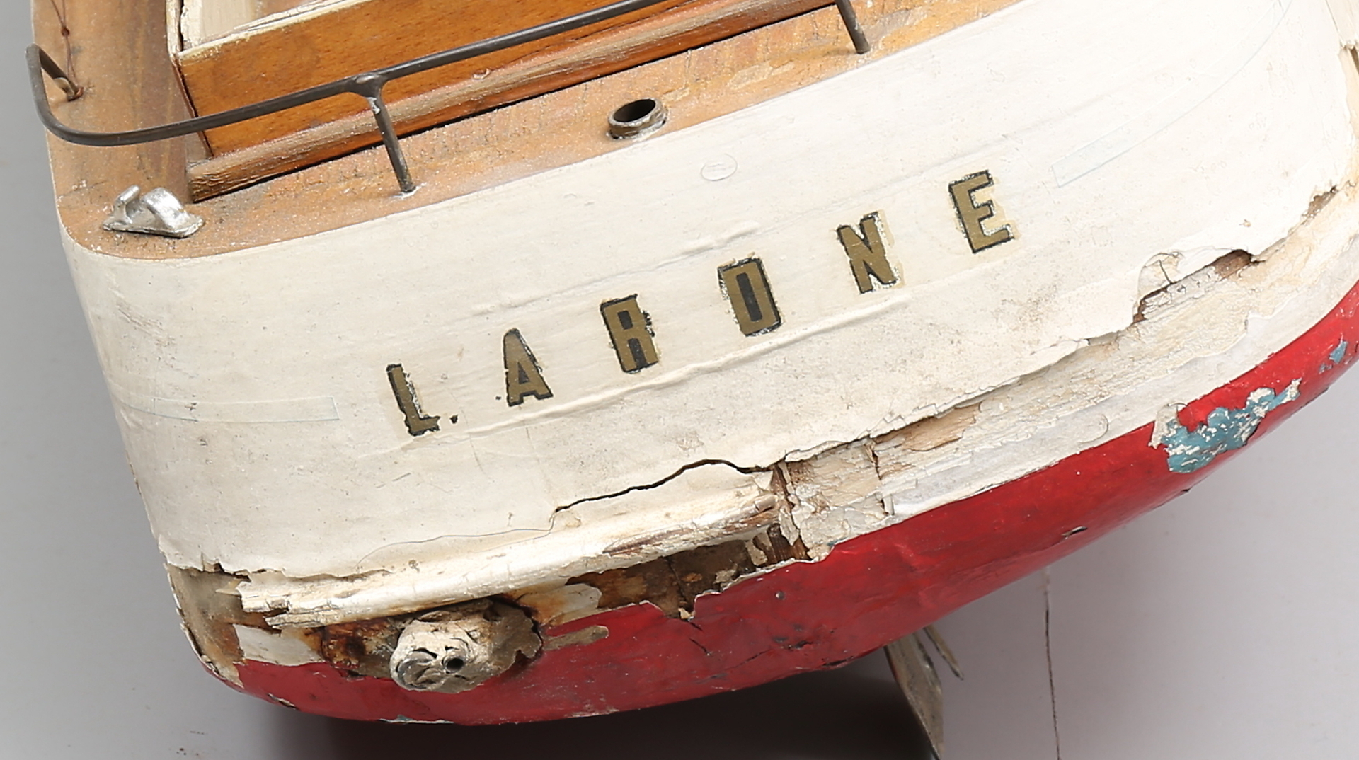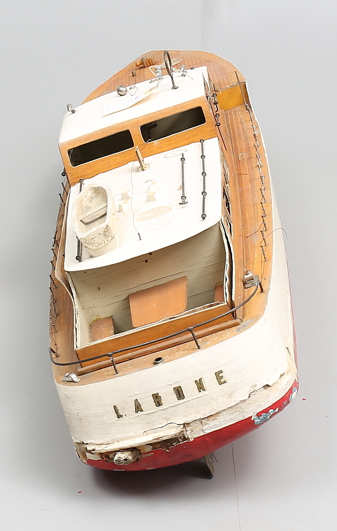 112963. STOR BÅDMODEL, træ, metal, midten af 1900-tallet.