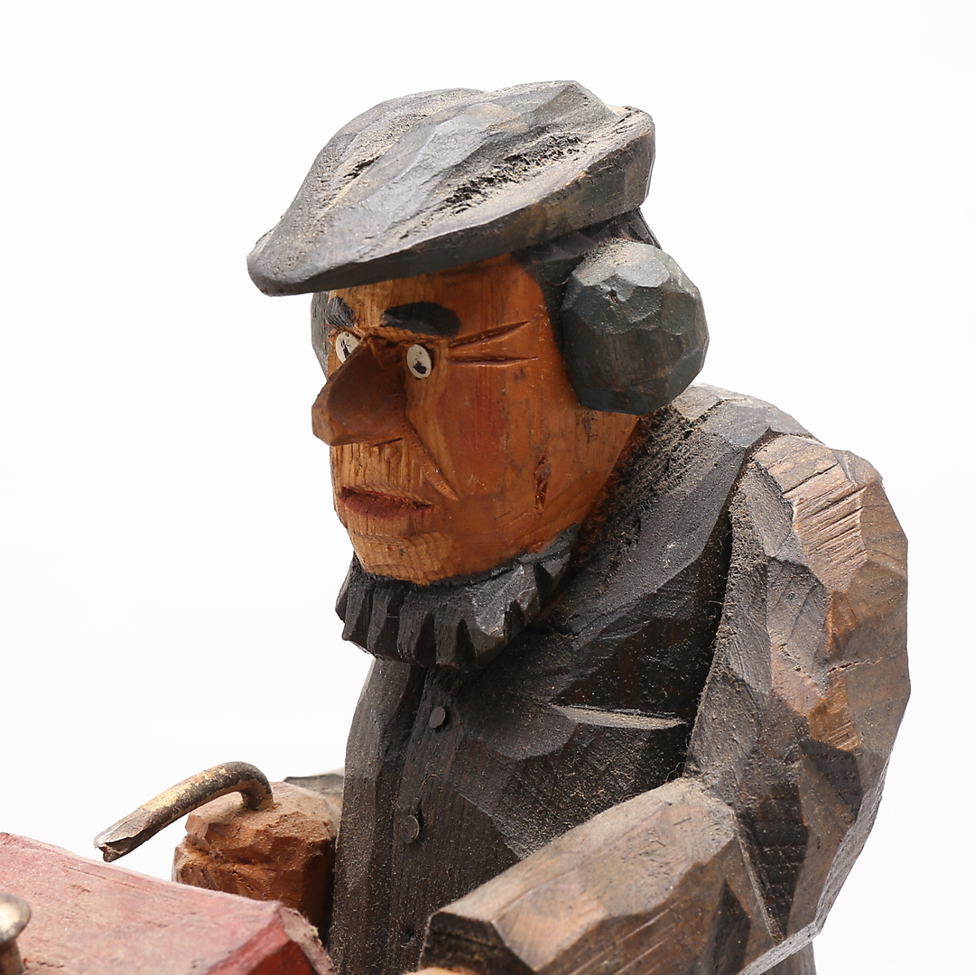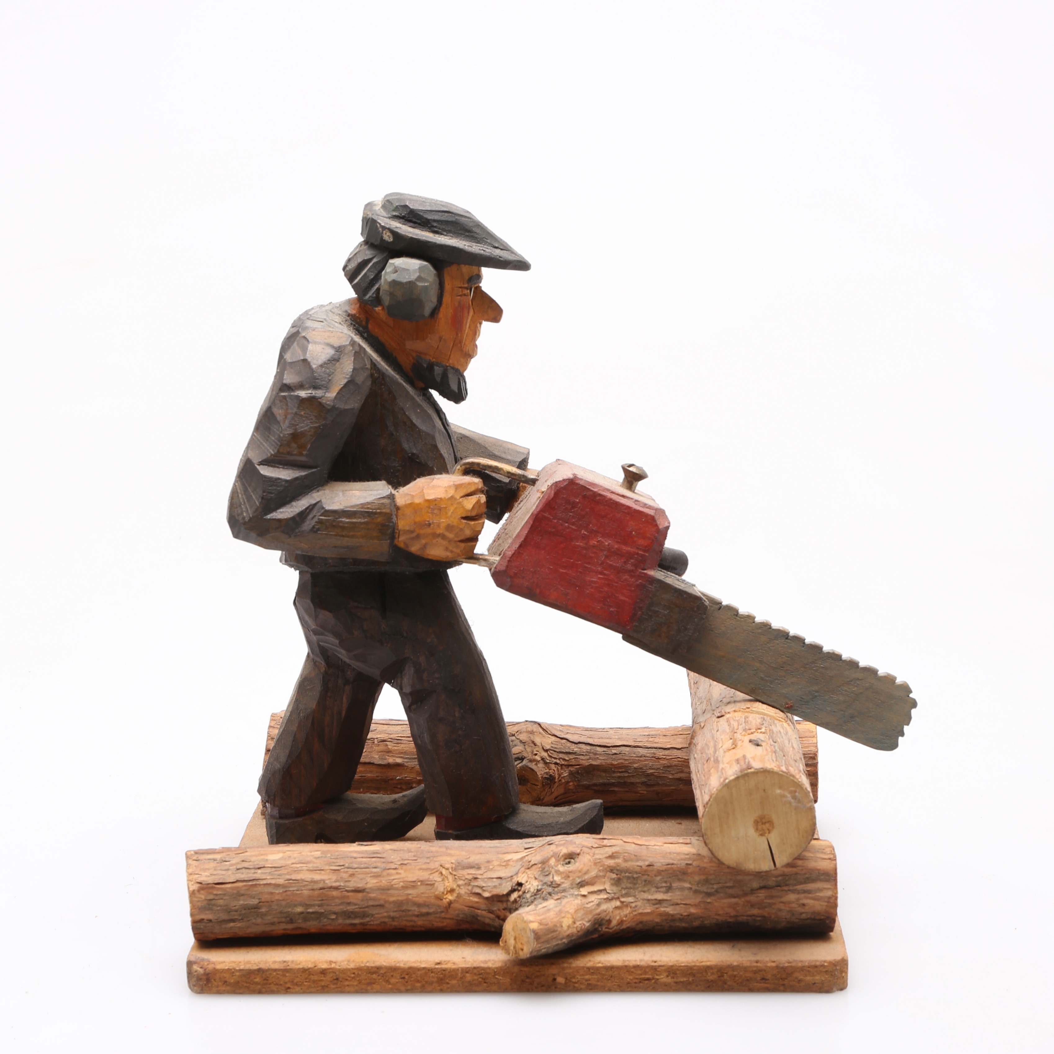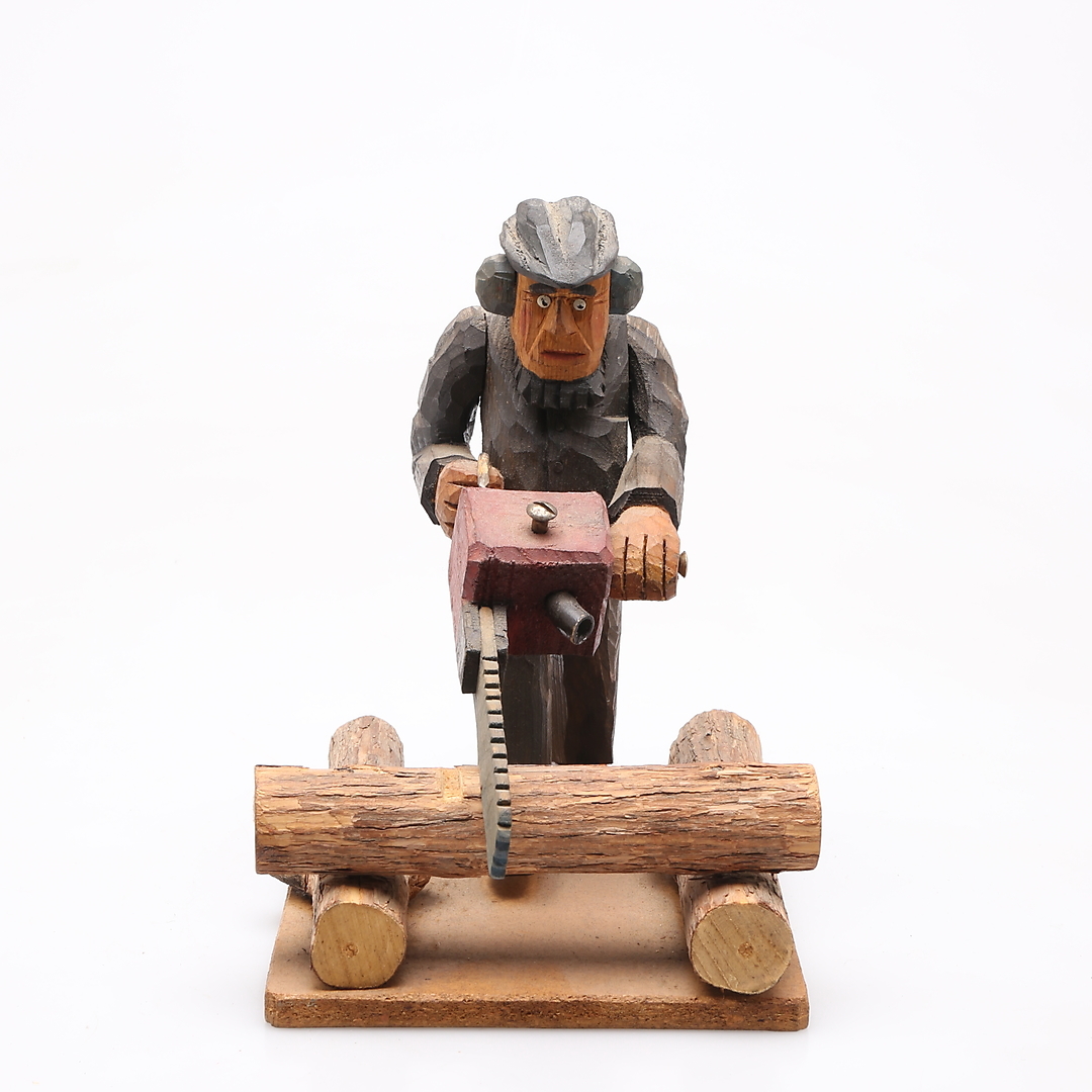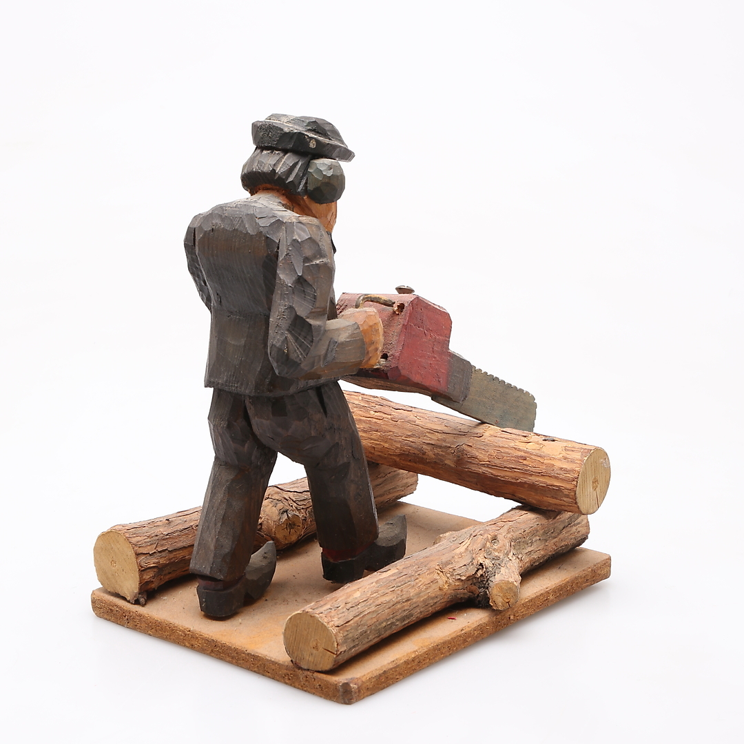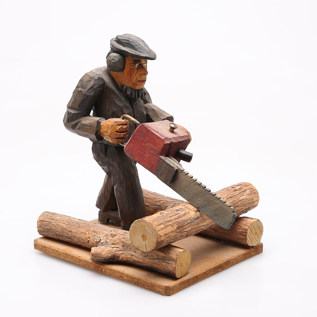 1130440. TRÆFIGUR, gammel mand med motorsav.