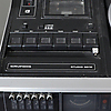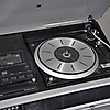 stereoanlæg med indbygget receiver samt kassettebåndoptager og pladespiller.