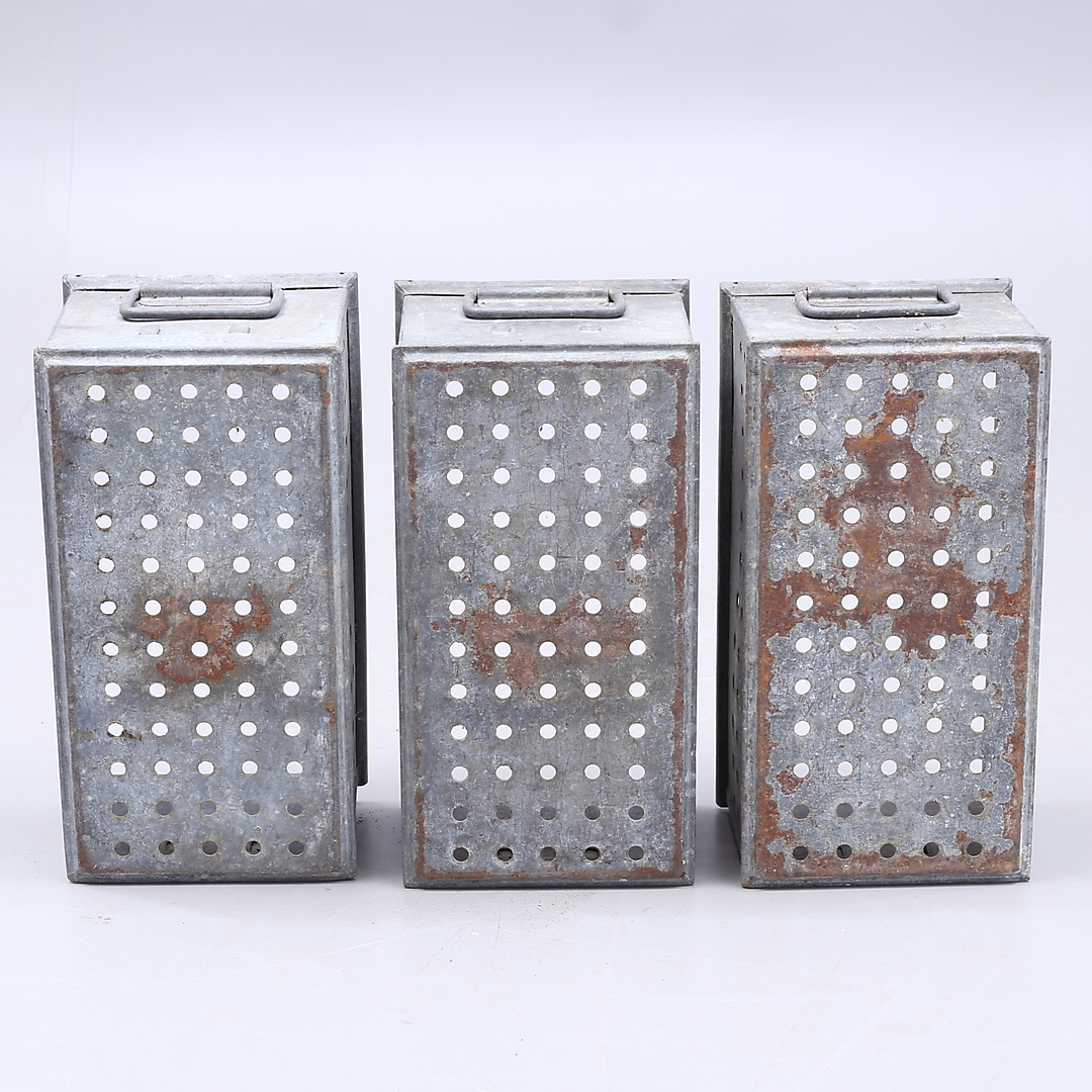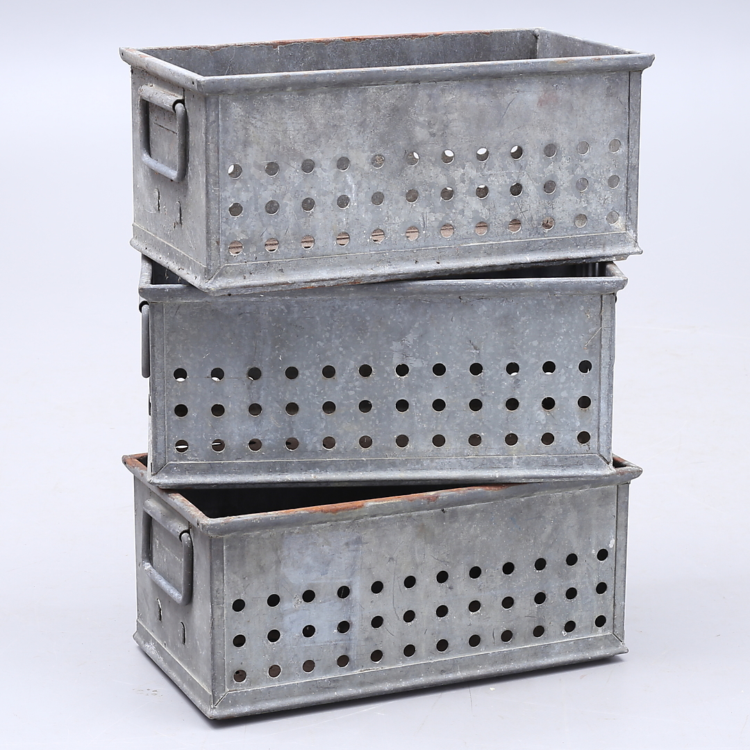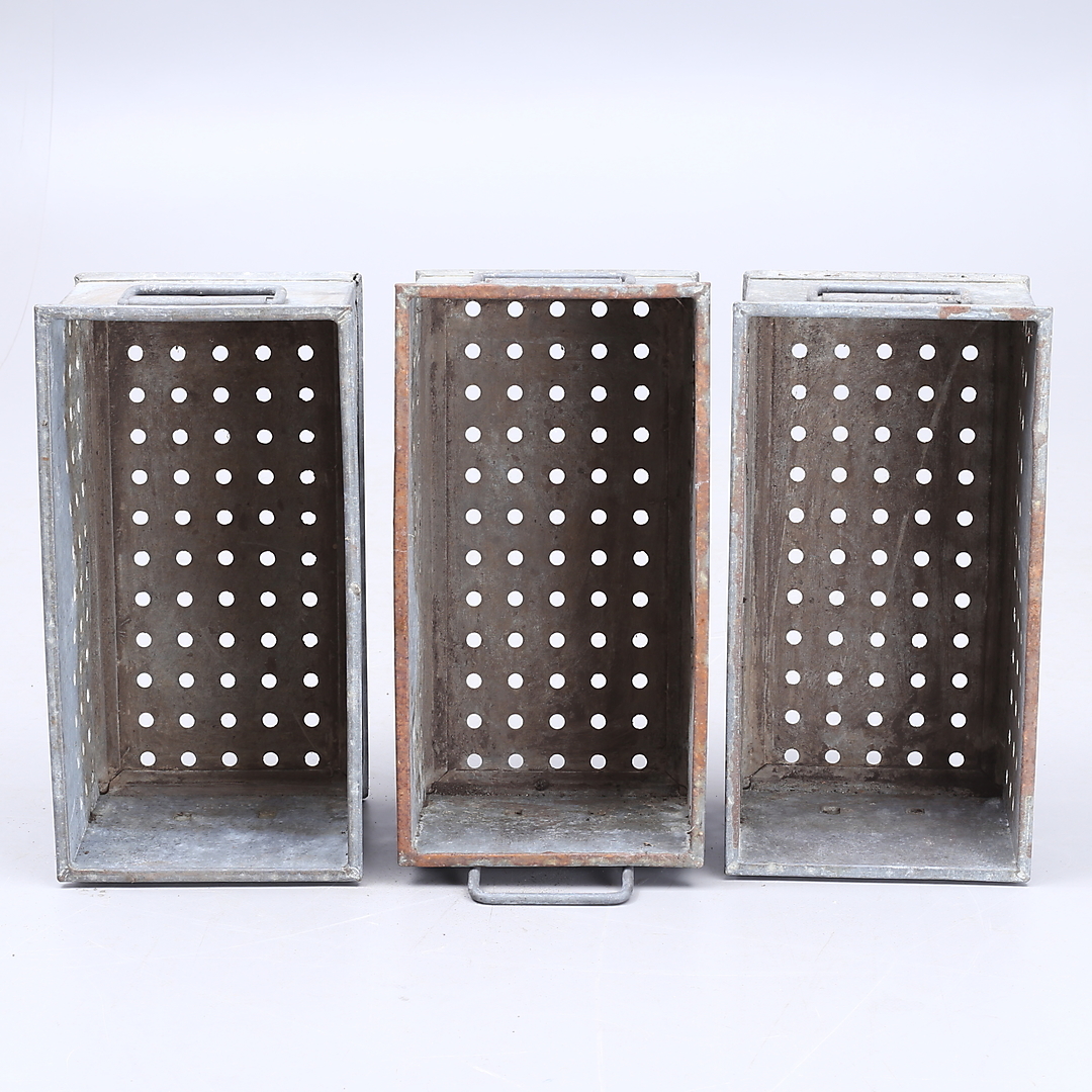 1134658. BLOMSTERÆSKER, 3 stk, zink.