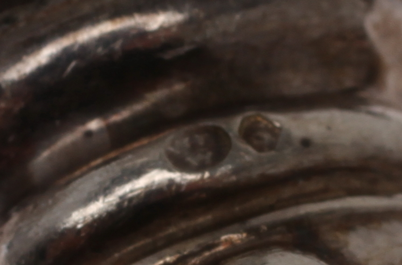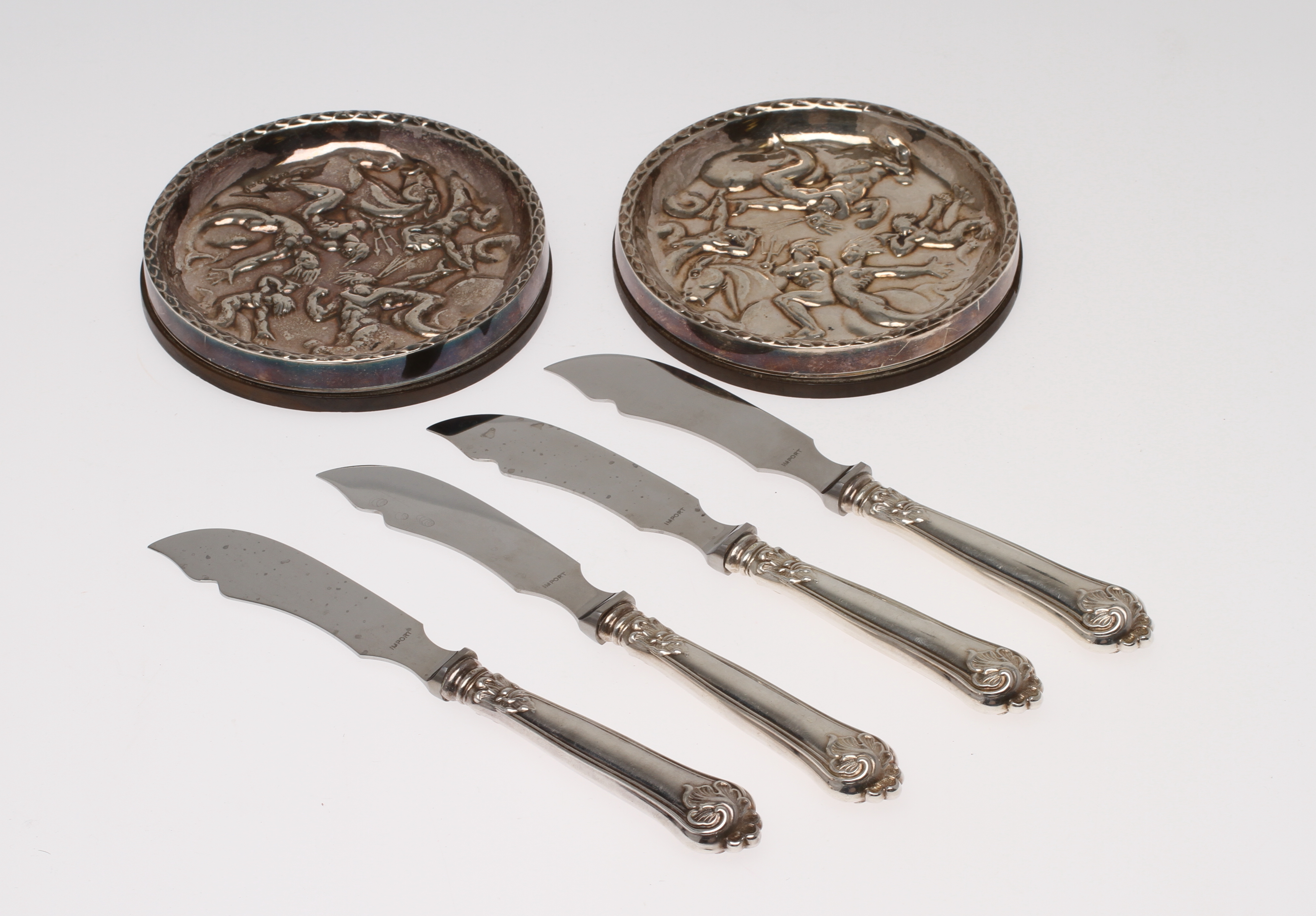 11404. ASKETØDE, 2 stk, GAB, KNIVE, 4 stk, sølv.