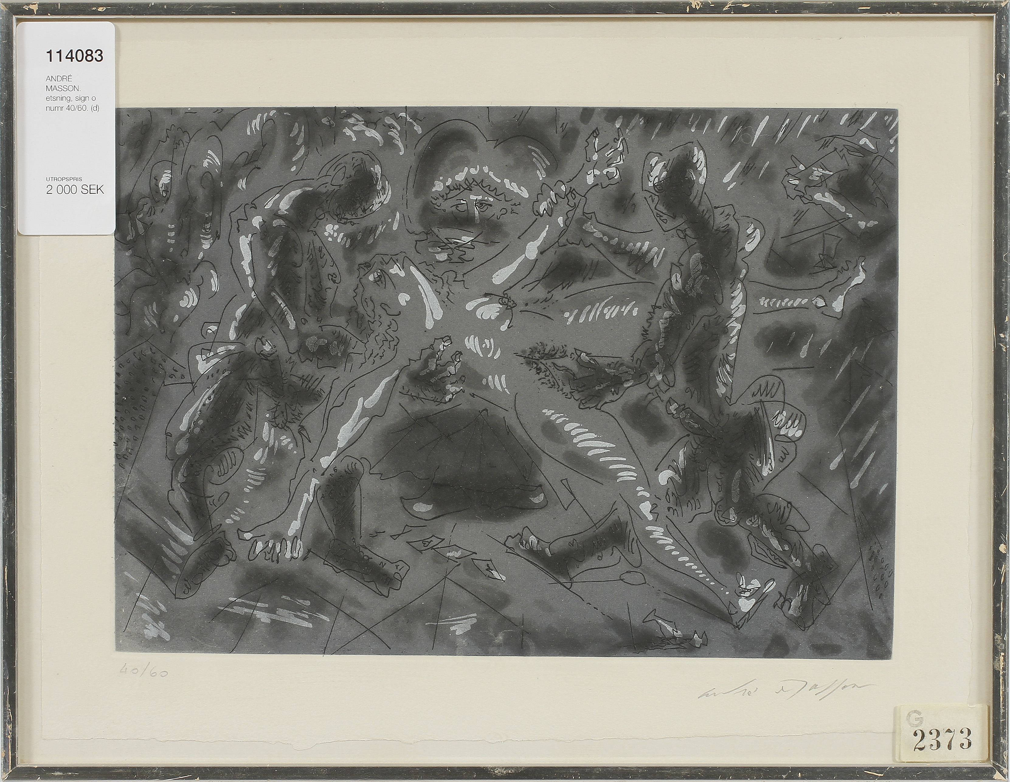 114083. ANDRÉ MASSON. radering, tegn o nummer 40/60.