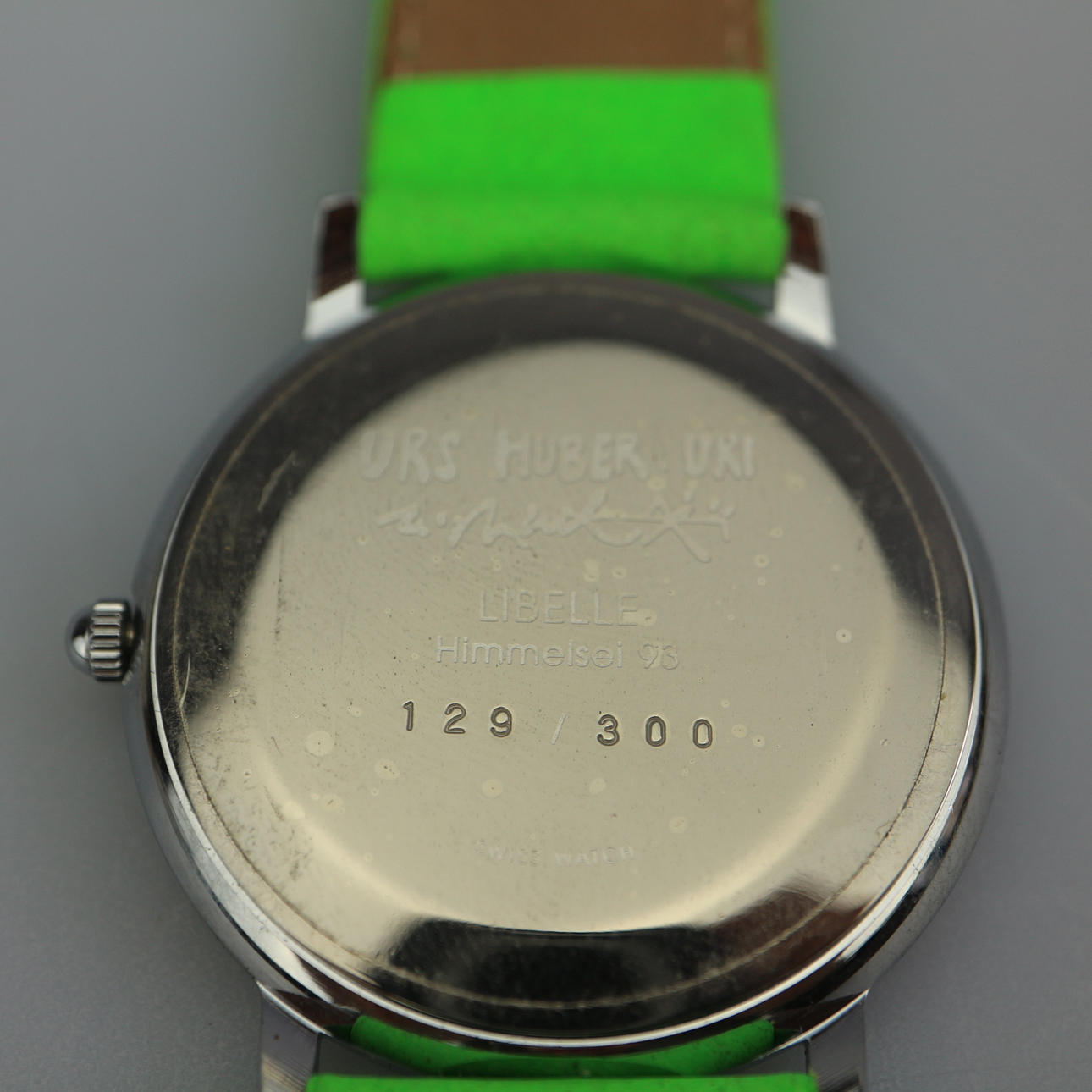 Swatch-ur fra "URS HUBER URI", grøn urskive med bemaling, grøn urrem, limited edition 129/300.
