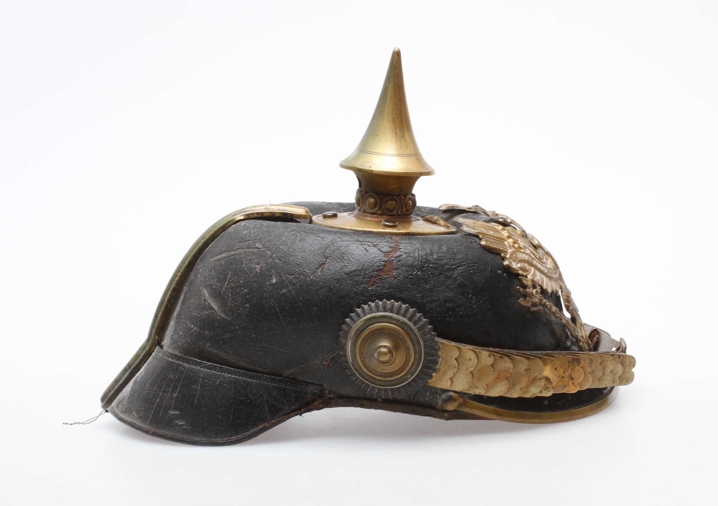 114819. PICKELHUVA, Tyskland, messing/læder.