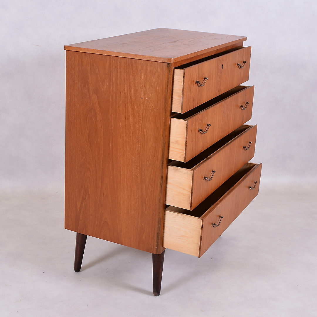1149418. Kommode, teaktræ, 4-skuffer, 1900-tallet.