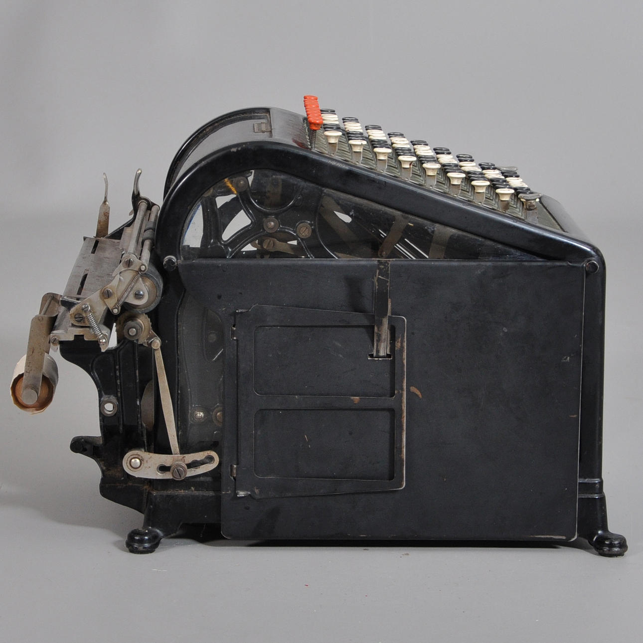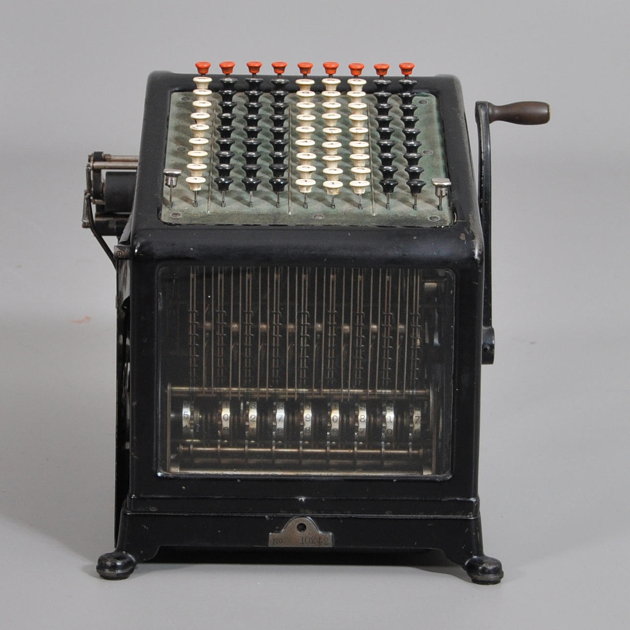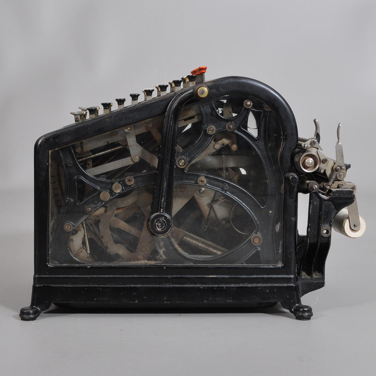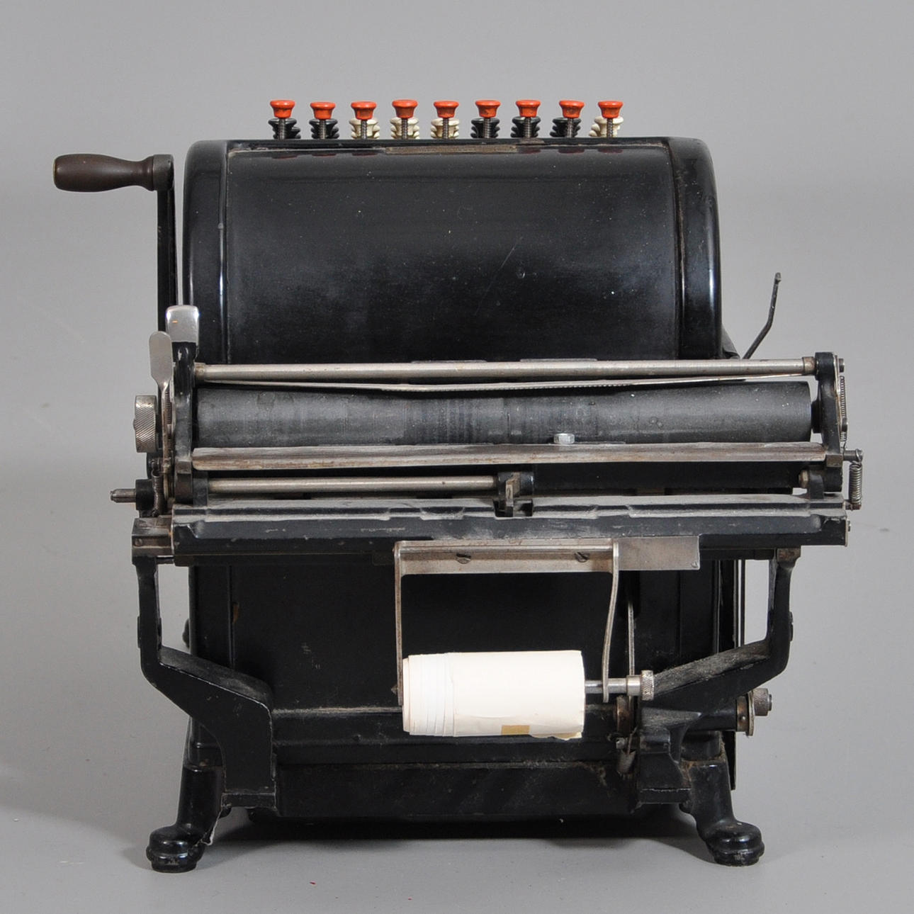 "BURROUGHS tilføjelsesmaskine fra USA. Model "Class1" fra omkring 1910. " 40 x 23 x 32 med klare sidestykker.
