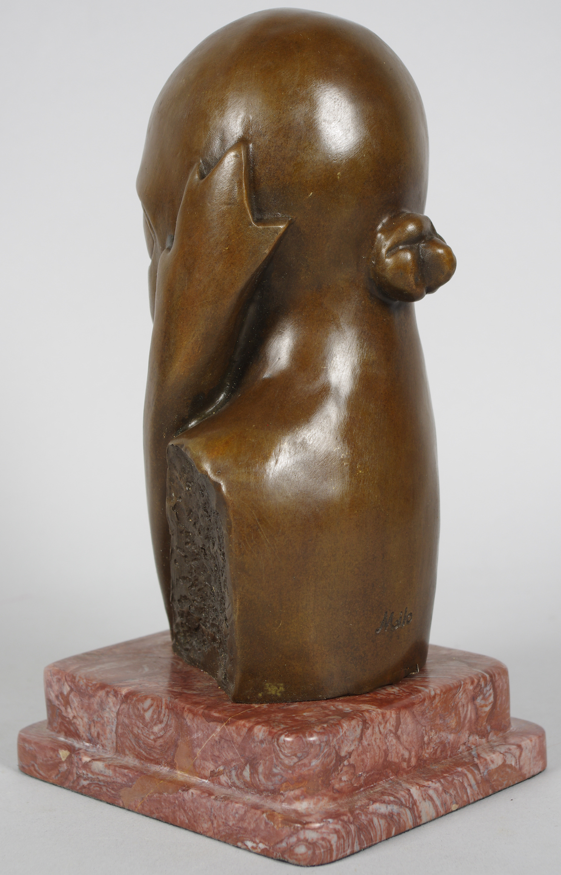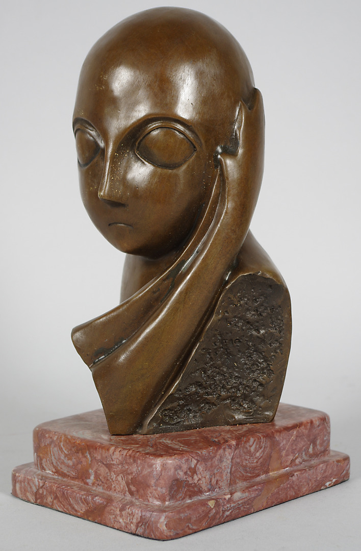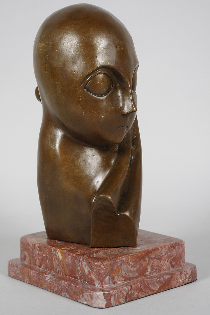 115176. MAX MILO. Bronzeskulptur på marmorsokkel, ansigtskomposition.