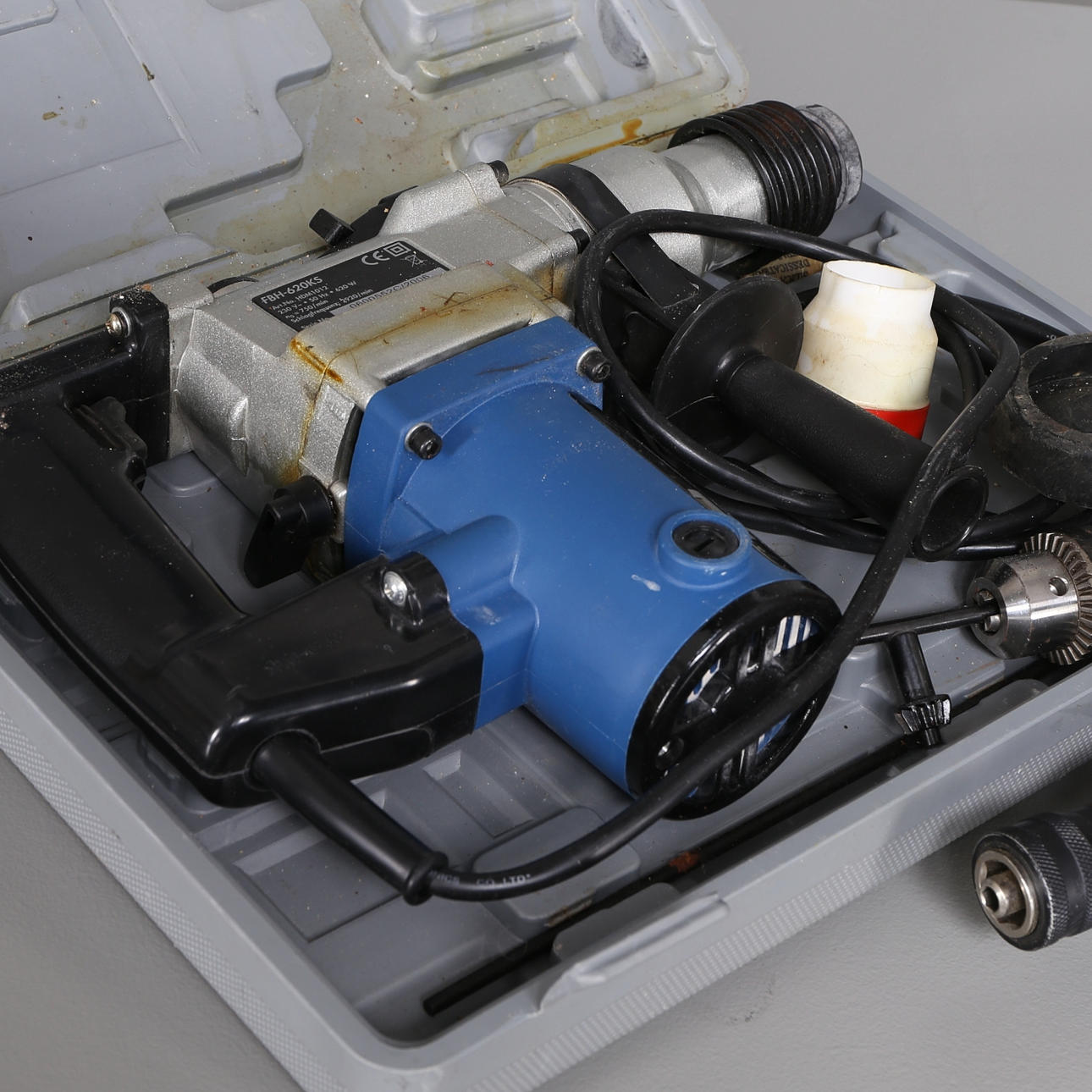 Ferm FBH620KS borehammer med tilbehør i transportkasse.