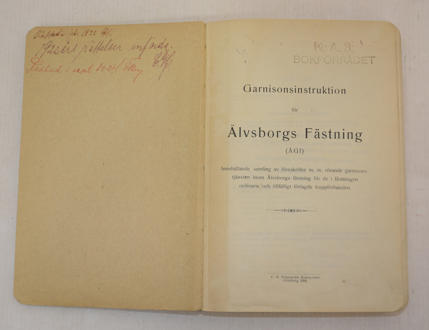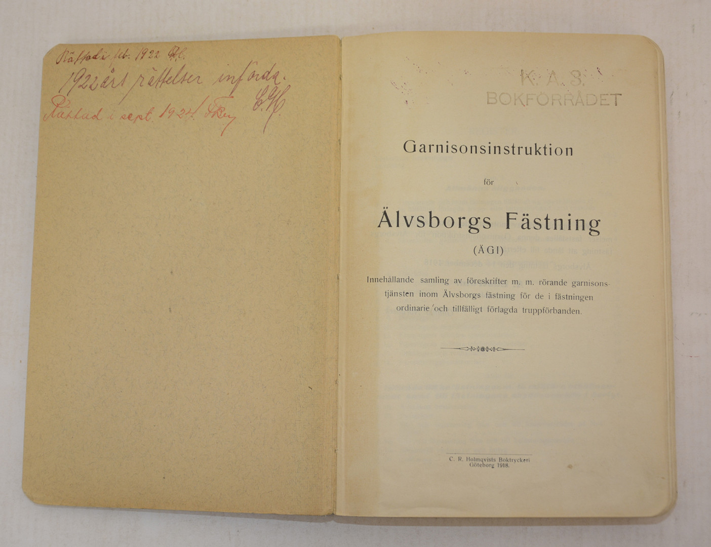 1154781. Garnisonsinstruktion for ÄLVSBORG FÆSTNING (EJERSKAB).